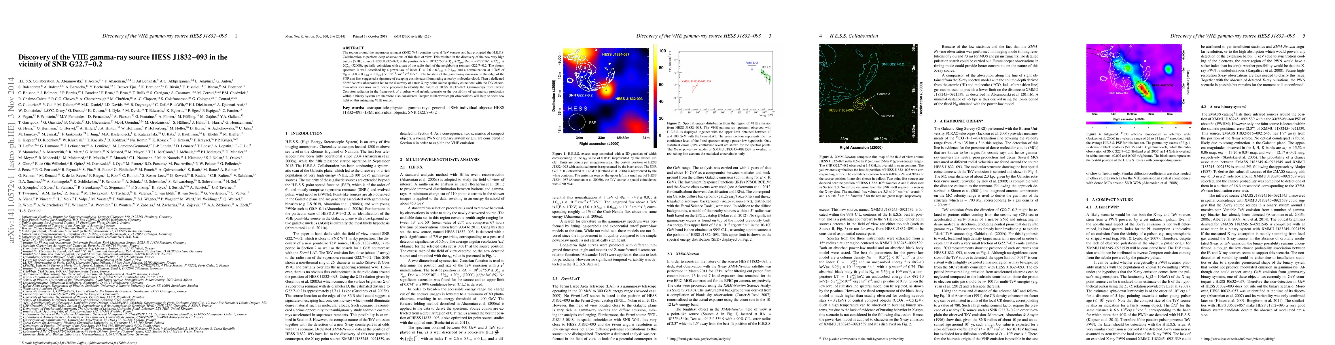 The H.E.S.S. Collaboration discovered the VHE gamma-ray source HESS J1832-093 near SNR G22.7-0.2, with a spectrum fitting a power-law index of $\Gamma = 2.6 \pm 0.3$. The gamma-ray emission's location suggests possible origins from cosmic-ray interactions or a pulsar wind nebula, with further multi-wavelength observations needed for clarification.