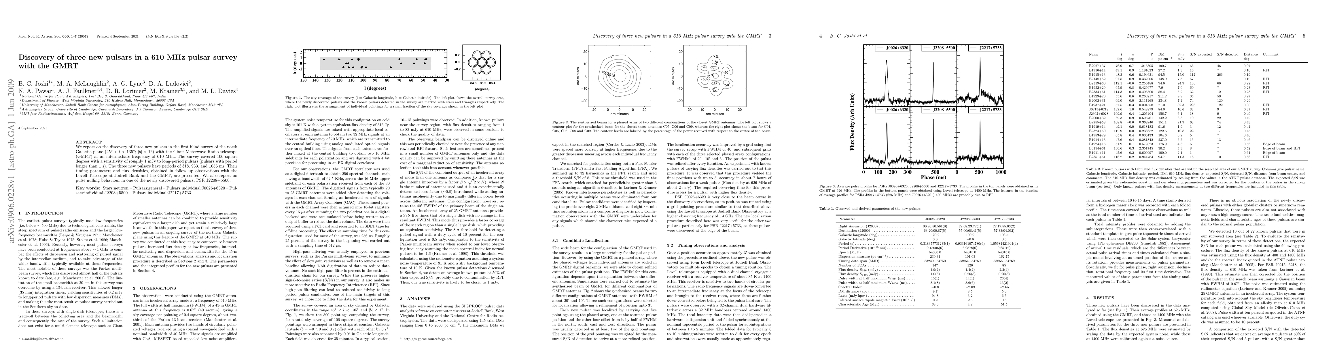 This paper reports the discovery of three new pulsars in a blind survey of the north Galactic plane using the GMRT at 610 MHz, covering 106 square degrees. The pulsars have periods of 318, 933, and 1056 ms, and one exhibits pulse nulling behavior.