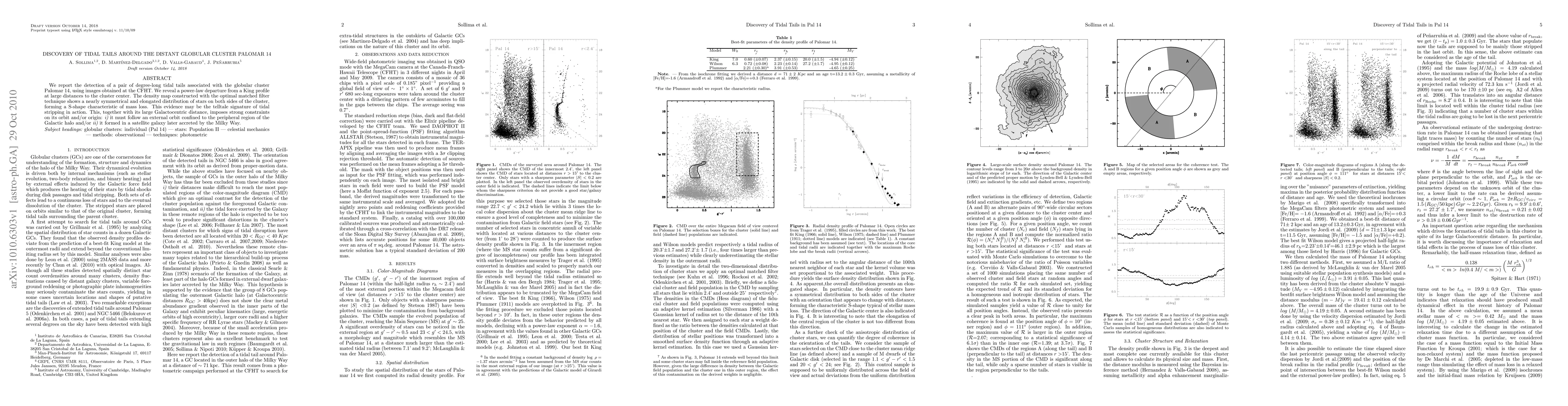 The paper reports the discovery of tidal tails around the distant globular cluster Palomar 14 using CFHT images, indicating tidal stripping and suggesting it follows an external orbit or formed in a satellite galaxy. The findings provide constraints on its orbit and origin.