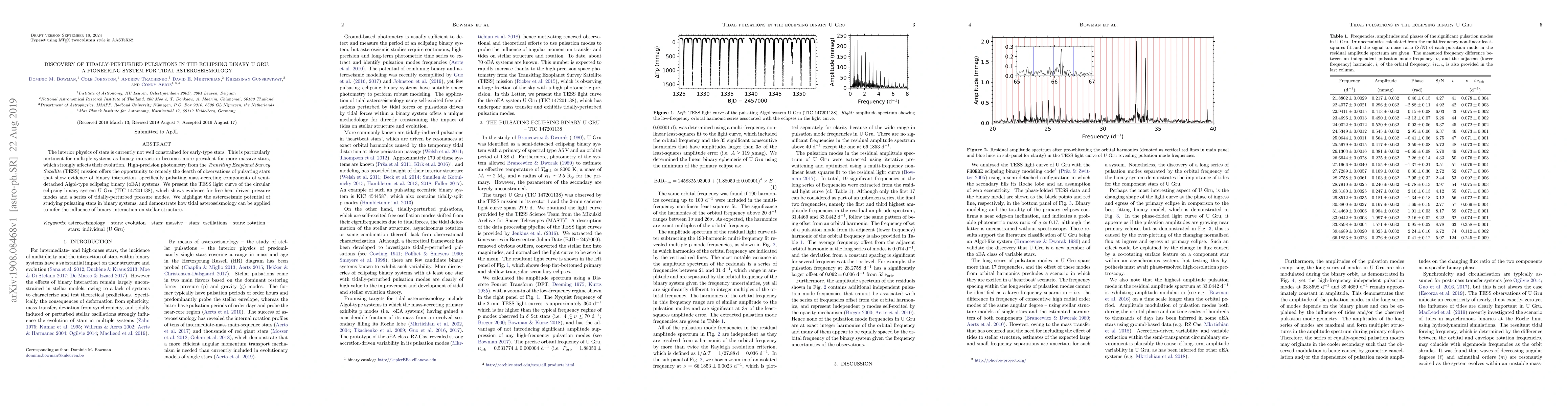 The interior physics of stars is currently not well constrained for early-type stars. This is particularly pertinent for multiple systems as binary interaction becomes more prevalent for more massive stars, which strongly affects their evolution. High-precision photometry from the Transiting Exoplanet Survey Satellite (TESS) mission offers the opportunity to remedy the dearth of observations of pulsating stars that show evidence of binary interaction, specifically pulsating mass-accreting components of semi-detached Algol-type eclipsing binary (oEA) systems. We present the TESS light curve of the circular eclipsing binary system U Gru (TIC 147201138), which shows evidence for free heat-driven pressure modes and a series of tidally-perturbed pressure modes. We highlight the asteroseismic potential of studying pulsating stars in binary systems, and demonstrate how tidal asteroseismology can be applied to infer the influence of binary interaction on stellar structure.