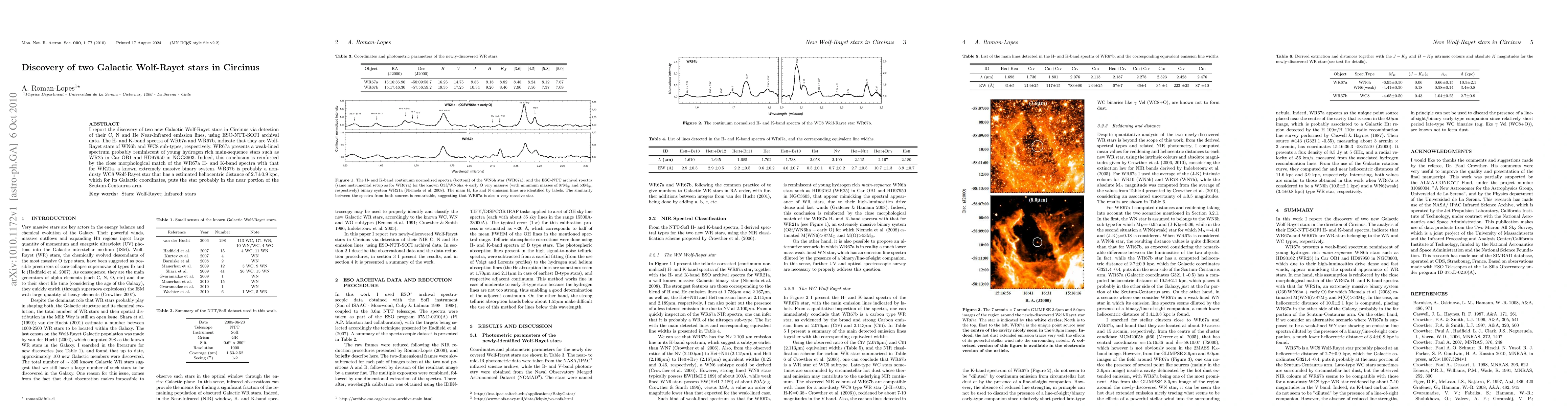 I report the discovery of two new Galactic Wolf-Rayet stars in Circinus via detection of their C, N and He Near-Infrared emission lines, using ESO-NTT-SOFI archival data. The H- and K-band spectra of WR67a and WR67b, indicate that they are Wolf-Rayet stars of WN6h and WC8 sub-types, respectively. WR67a presents a weak-lined spectrum probably reminiscent of young hydrogen rich main-sequence stars such as WR25 in Car OB1 and HD97950 in NGC3603. Indeed, this conclusion is reinforced by the close morphological match of the WR67a H- and K-band spectra with that for WR21a, a known extremely massive binary system. WR67b is probably a non-dusty WC8 Wolf-Rayet star that has a estimated heliocentric distance of 2.7(0.9) kpc, which for its Galactic coordinates, puts the star probably in the near portion of the Scutum-Centaurus arm.