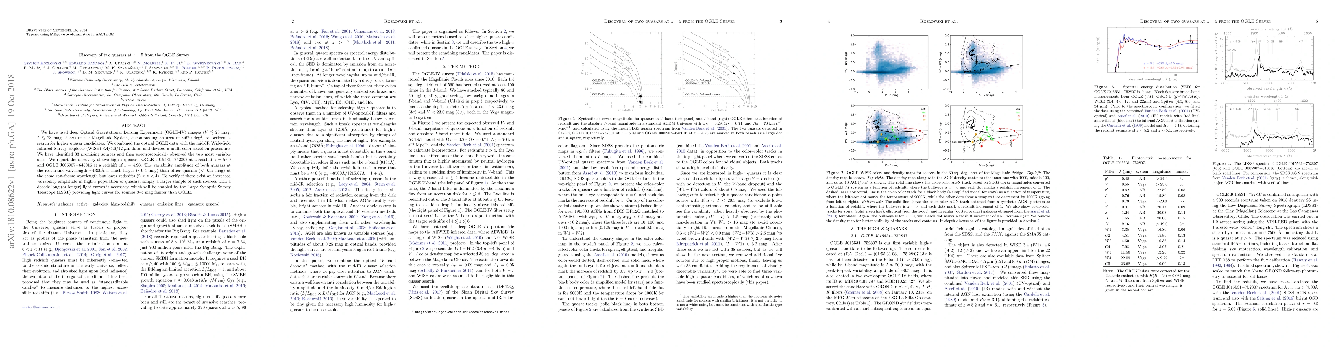 high-$z$ quasar candidates. We combined the optical OGLE data with the mid-IR