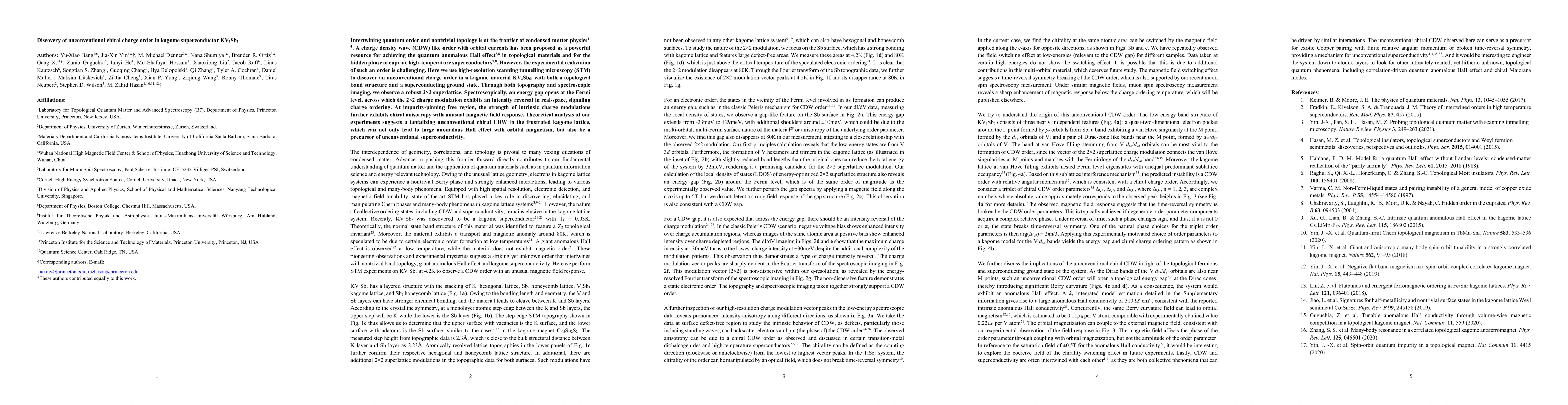 This paper reports the discovery of an unconventional chiral charge density wave in the kagome superconductor KV3Sb5 using high-resolution scanning tunneling microscopy. The observed 2x2 superlattice with chiral anisotropy and magnetic field response suggests a potential link to the quantum anomalous Hall effect and unconventional superconductivity.
