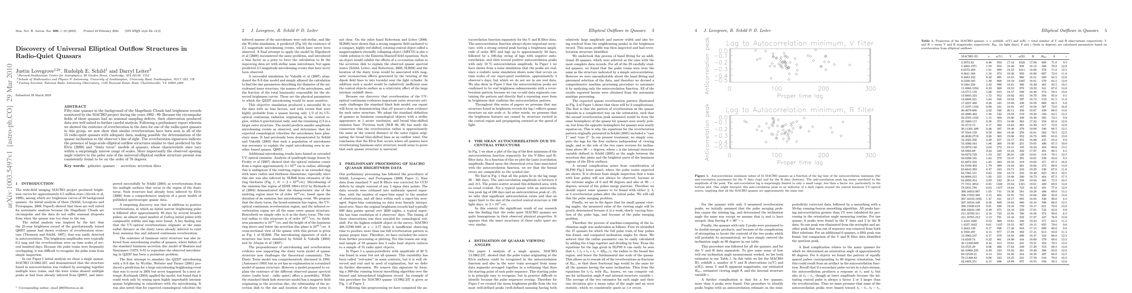 Researchers discovered large-scale elliptical outflow structures in radio-quiet quasars, with a consistent opening angle of 78 degrees, providing insight into the nature of these celestial objects.