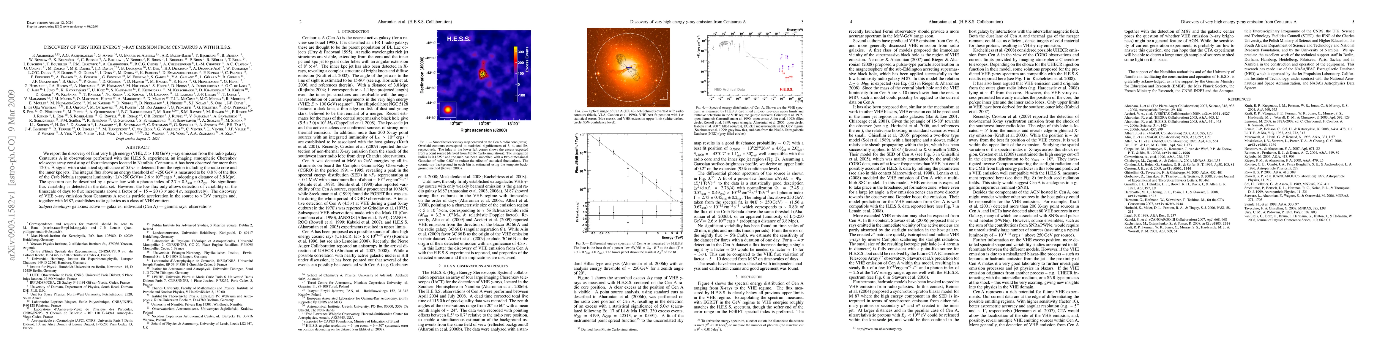The H.E.S.S. experiment detected faint very high energy gamma-ray emission from Centaurus A, revealing particle acceleration to >TeV energies and establishing radio galaxies as a class of VHE emitters. The observed gamma-ray flux is ~0.8% of the Crab Nebula's flux, with no significant variability detected.