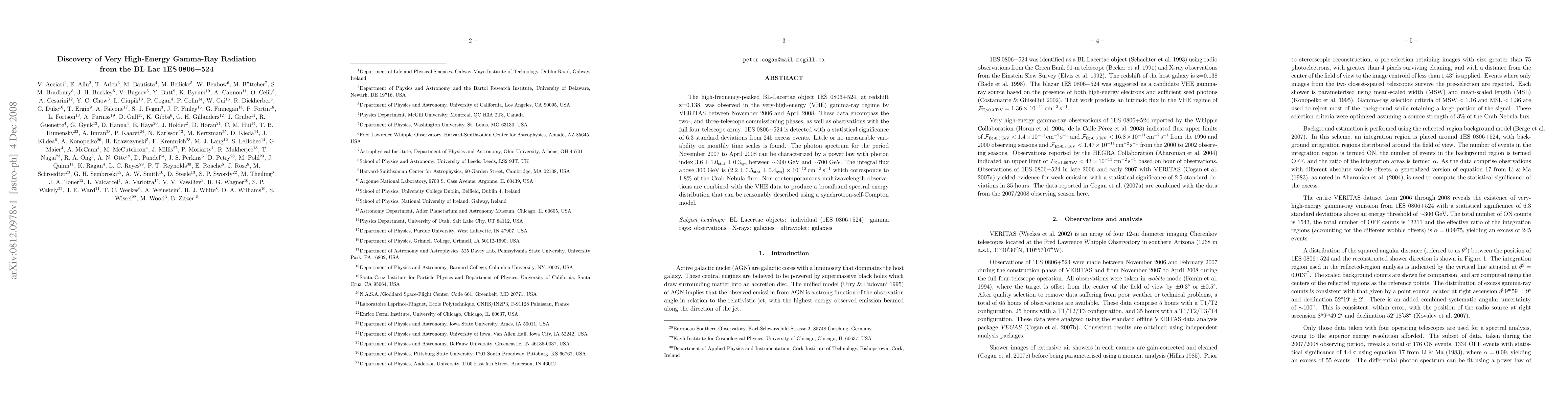 Researchers detected very high-energy gamma-ray radiation from BL Lac 1ES 0806+524, with a photon index of 3.6, corresponding to 1.8% of the Crab Nebula flux.