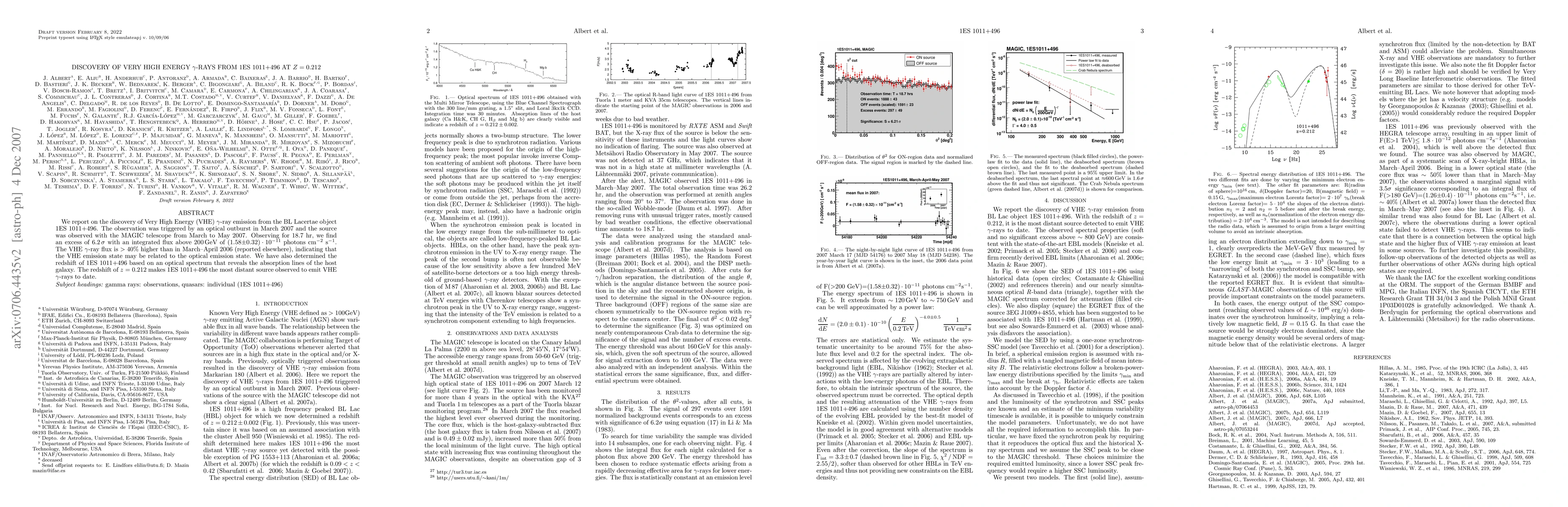 We report on the discovery of Very High Energy (VHE) gamma-ray emission from the BL Lacertae object 1ES1011+496. The observation was triggered by an optical outburst in March 2007 and the source was observed with the MAGIC telescope from March to May 2007. Observing for 18.7 hr we find an excess of 6.2 sigma with an integrated flux above 200 GeV of (1.58$\pm0.32) 10^{-11}$ photons cm$^{-2}$ s$^{-1}$. The VHE gamma-ray flux is >40% higher than in March-April 2006 (reported elsewhere), indicating that the VHE emission state may be related to the optical emission state. We have also determined the redshift of 1ES1011+496 based on an optical spectrum that reveals the absorption lines of the host galaxy. The redshift of z=0.212 makes 1ES1011+496 the most distant source observed to emit VHE gamma-rays up to date.