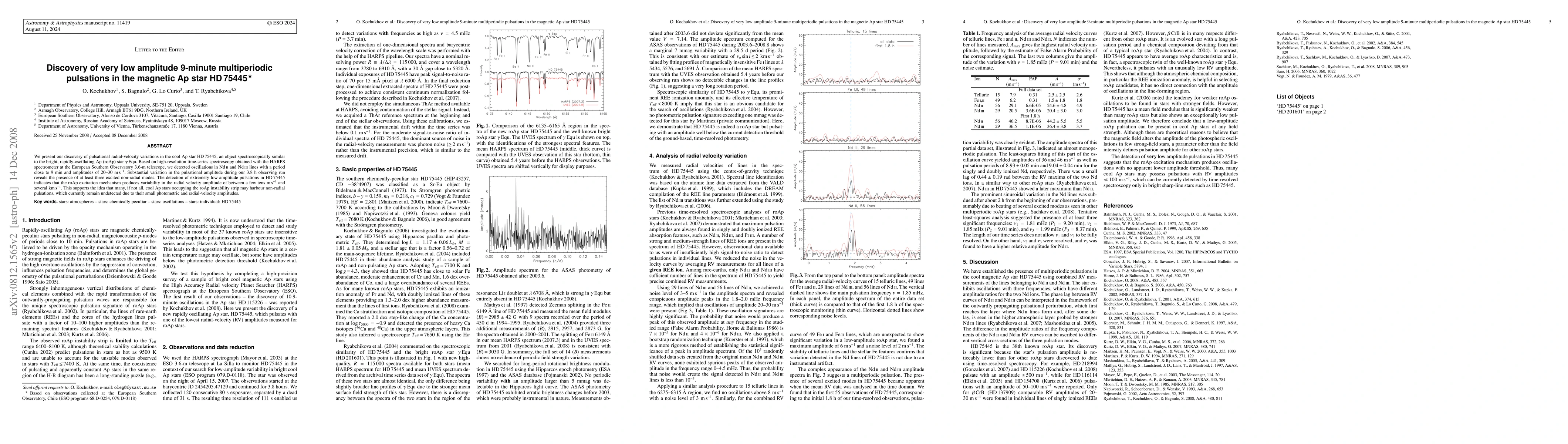 Researchers discovered very low amplitude 9-minute multiperiodic pulsations in the magnetic Ap star HD 75445 using high-resolution spectroscopy. The detected pulsations, with amplitudes of 20-30 m/s, suggest the presence of multiple non-radial modes and indicate that many cool Ap stars may harbor similar pulsations.