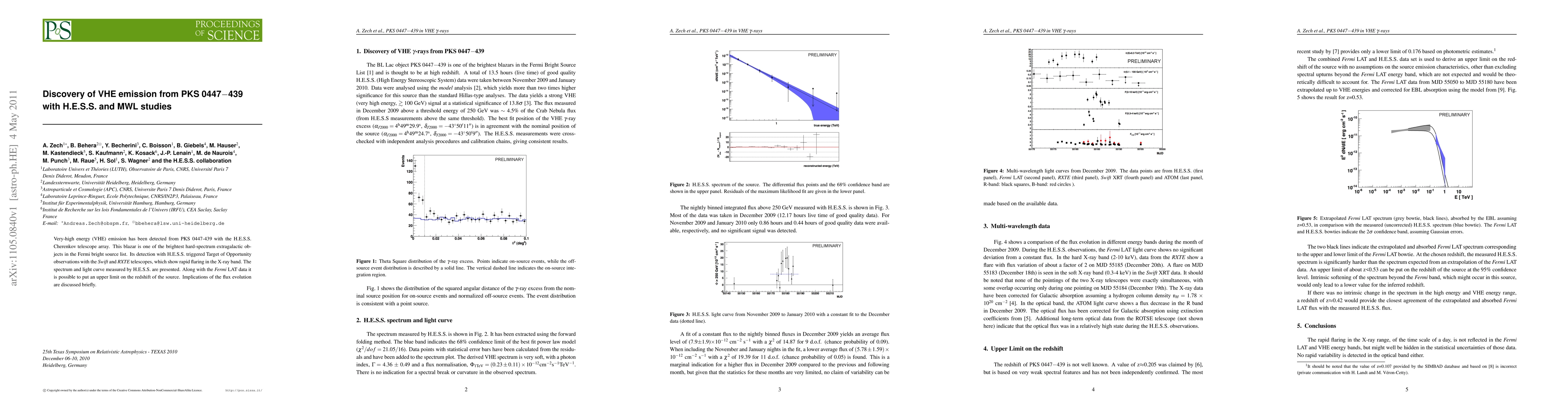 Very-high energy (VHE) emission has been detected from PKS 0447-439 with the H.E.S.S. Cherenkov telescope array. This blazar is one of the brightest hard-spectrum extragalactic objects in the Fermi bright source list. Its detection with H.E.S.S. triggered Target of Opportunity observations with the Swift and RXTE telescopes, which show rapid flaring in the X-ray band. The spectrum and light curve measured by H.E.S.S. are presented. Along with the Fermi LAT data it is possible to put an upper limit on the redshift of the source. Implications of the flux evolution are discussed briefly.