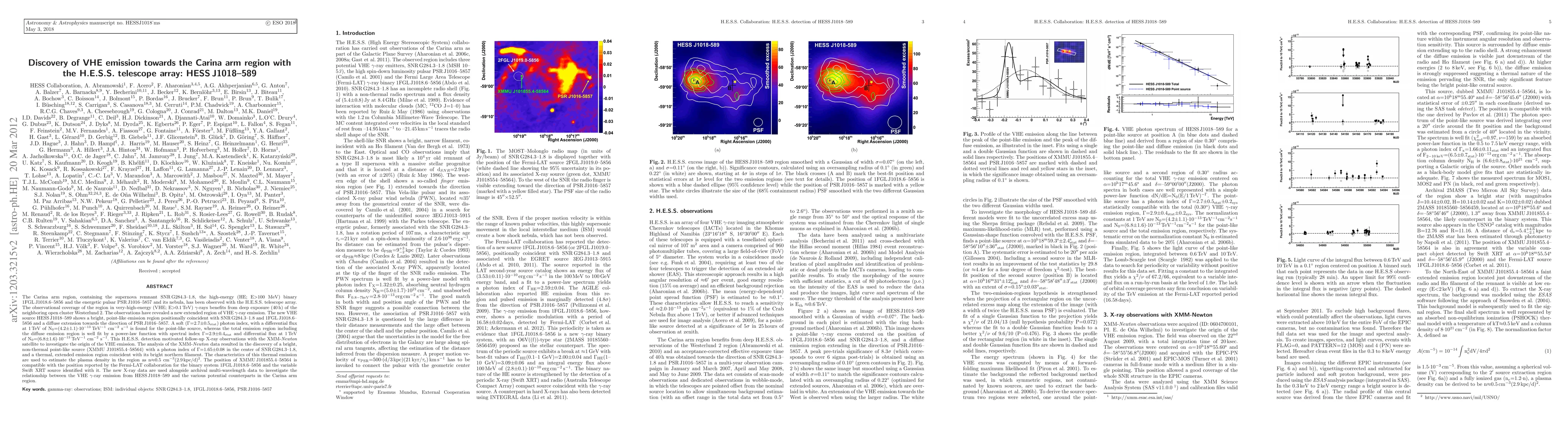 The H.E.S.S. telescope array discovered a new VHE gamma-ray emission source, HESS J1018-589, coincident with SNR G284.3-1.8, with a bright point-like component and a diffuse extension. Follow-up XMM-Newton observations identified a non-thermal point-like X-ray source and a thermal emission region, aiding in the analysis of the VHE emission's origin.