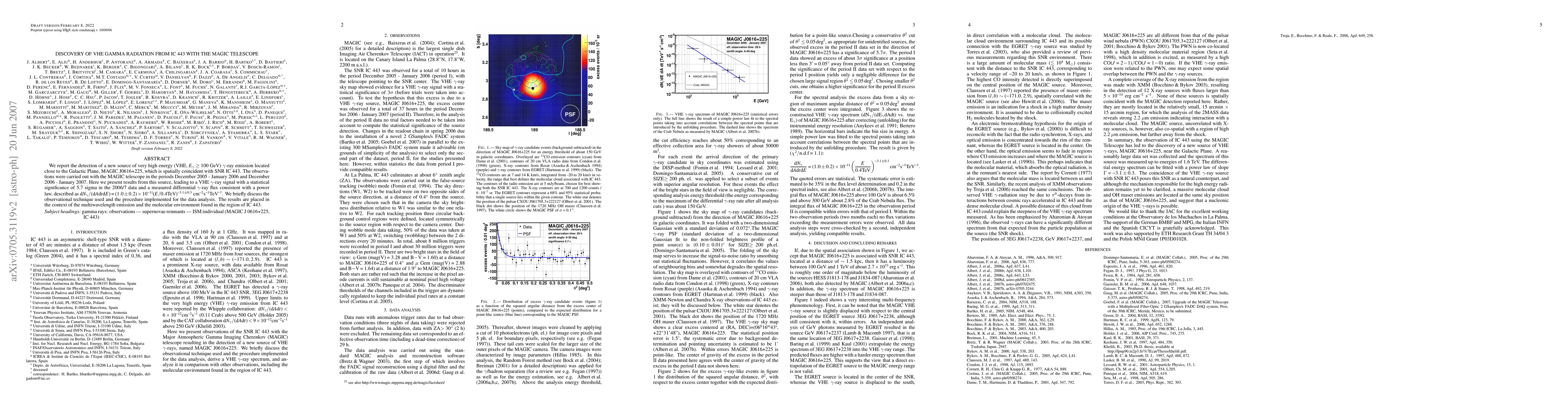 We report the detection of a new source of very high energy (VHE, E_gamma >= 100GeV) gamma-ray emission located close to the Galactic Plane, MAGIC J0616+225, which is spatially coincident with SNR IC443. The observations were carried out with the MAGIC telescope in the periods December 2005 - January 2006 and December 2006 - January 2007. Here we present results from this source, leading to a VHE gamma-ray signal with a statistical significance of 5.7 sigma in the 2006/7 data and a measured differential gamma-ray flux consistent with a power law, described as dN_gamma/(dA dt dE) = (1.0 +/- 0.2)*10^(-11)(E/0.4 TeV)^(-3.1 +/- 0.3) cm^(-2)s^(-1)TeV^(-1). We briefly discuss the observational technique used and the procedure implemented for the data analysis. The results are put in the perspective of the multiwavelength emission and the molecular environment found in the region of IC443.