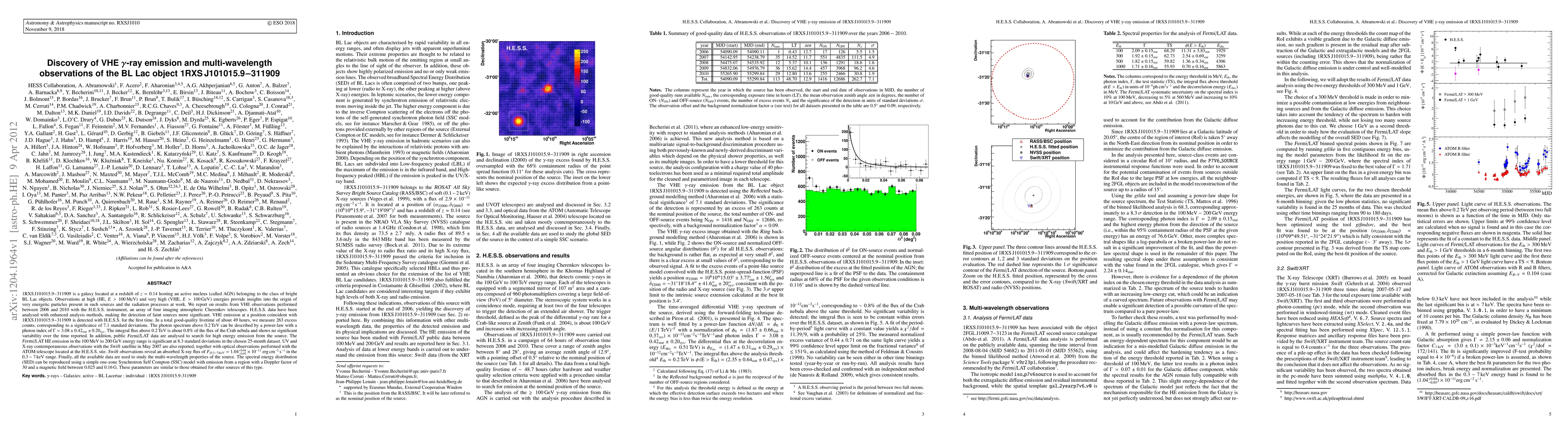 This paper reports the first detection of very high-energy (VHE) gamma-ray emission from the BL Lac object 1RXS J101015.9-311909 using H.E.S.S. observations, revealing a power-law spectrum with a photon index of 3.08±0.42. Multi-wavelength observations, including Fermi/LAT and Swift, provide additional insights into the source's high-energy behavior and support a one-zone SSC model for its spectral energy distribution.