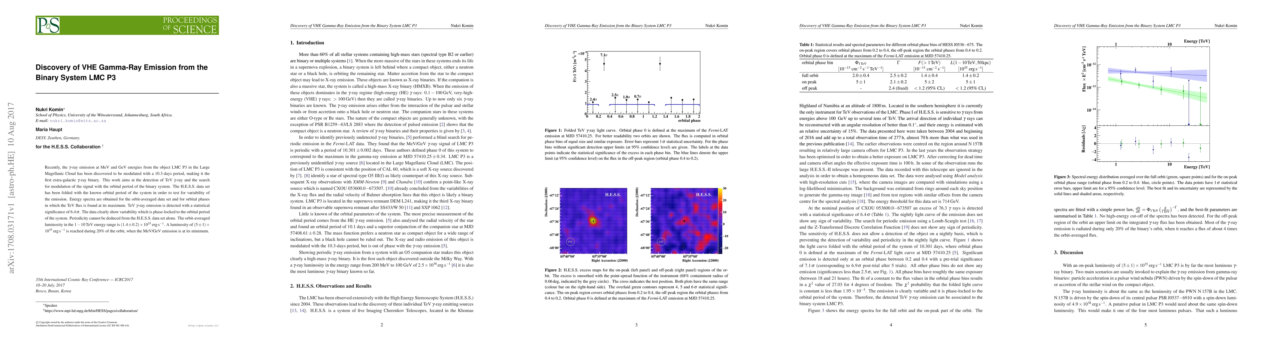 The research paper reports the discovery of Very High Energy (VHE) gamma-ray emission from the binary system LMC P3 in the Large Magellanic Cloud, modulated with a 10.3-day orbital period. Utilizing H.E.S.S. data, the study detected TeV gamma-ray emission with a 6.4,$sigma$ significance, confirming variability phase-locked to the orbital period. The orbit-averaged luminosity in the 1-10 TeV energy range is $(1.4 pm 0.2) imes 10^{35},mathrm{erg,s}^{-1}$, while it reaches $(5 pm 1) imes 10^{35},mathrm{erg,s}^{-1}$ during 20% of the orbit when MeV/GeV emission is minimal.