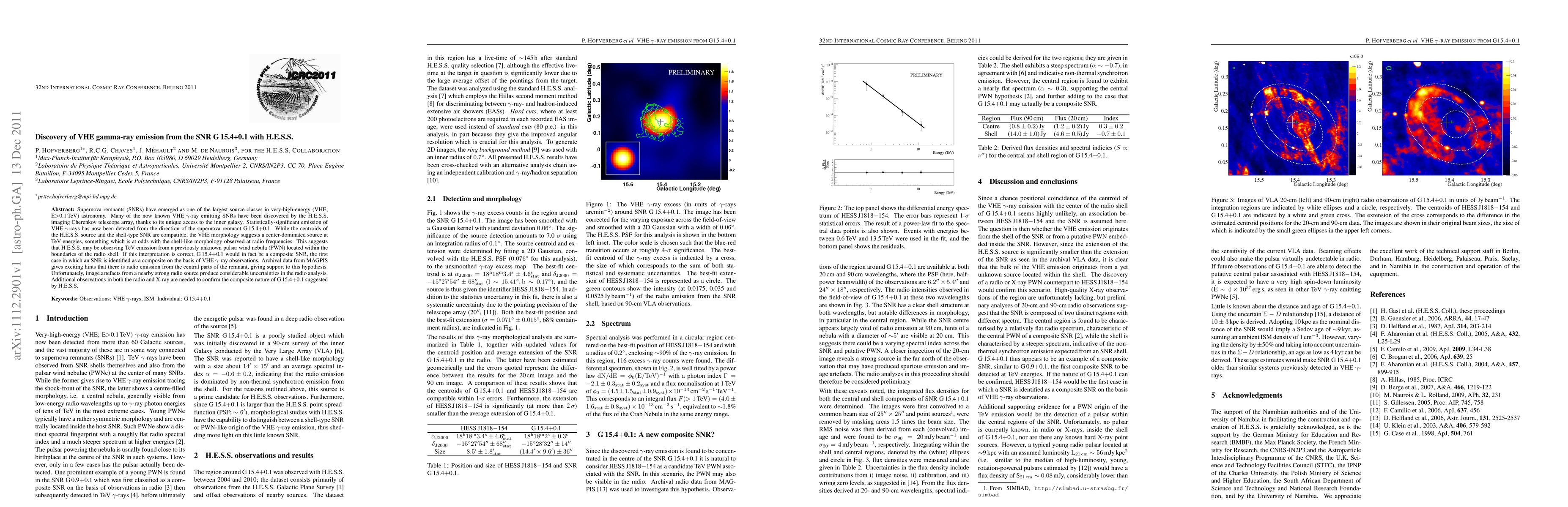 Supernova remnants (SNRs) have emerged as one of the largest source classes in very-high-energy (VHE; E>0.1,TeV) astronomy. Many of the now known VHE gamma-ray emitting SNRs have been discovered by the H.E.S.S. imaging Cherenkov telescope array, thanks to its unique access to the inner galaxy. Statistically-significant emission of VHE gamma rays has now been detected from the direction of the supernova remnant G15.4+0.1. While the centroids of the H.E.S.S. source and the shell-type SNR are compatible, the VHE morphology suggests a center-dominated source at TeV energies, something which is at odds with the shell-like morphology observed at radio frequencies. This suggests that H.E.S.S. may be observing TeV emission from a previously unknown pulsar wind nebula (PWN) located within the boundaries of the radio shell. If this interpretation is correct, G15.4+0.1 would in fact be a composite SNR, the first case in which an SNR is identified as a composite on the basis of VHE gamma-ray observations. Archival data from MAGPIS gives exciting hints that there is radio emission from the central parts of the remnant, giving support to this hypothesis. Unfortunately, image artefacts from a nearby strong radio source produce considerable uncertainties in the radio analysis. Additional observations in both the radio and X-ray are needed to confirm the composite nature of G15.4+0.1 suggested by H.E.S.S.