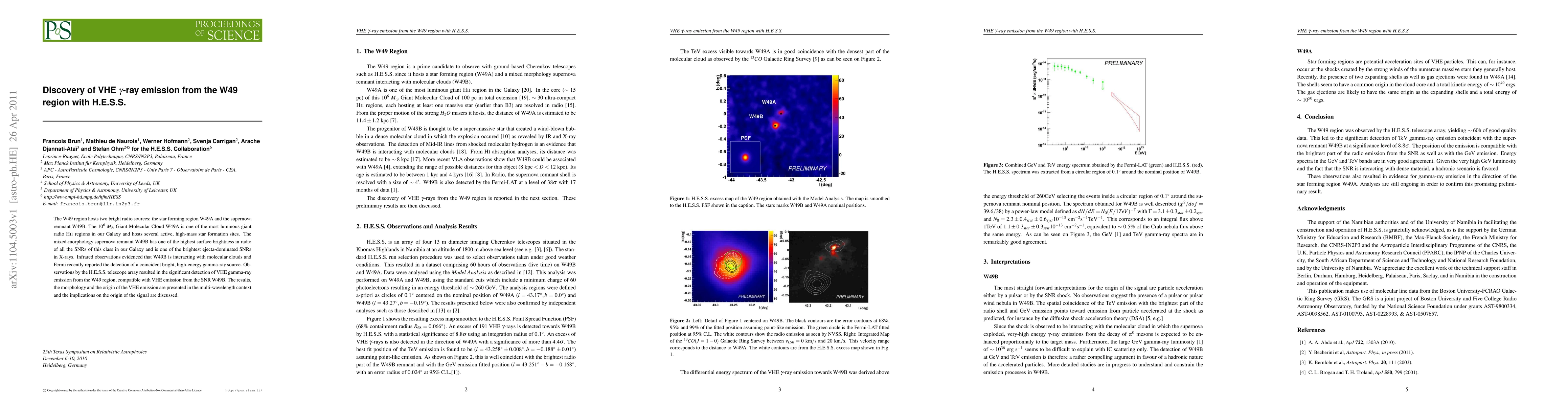 The H.E.S.S. telescope array detected significant VHE gamma-ray emission from the W49 region, primarily associated with the supernova remnant W49B, providing insights into its interaction with surrounding molecular clouds and the origin of the high-energy gamma-ray signal.