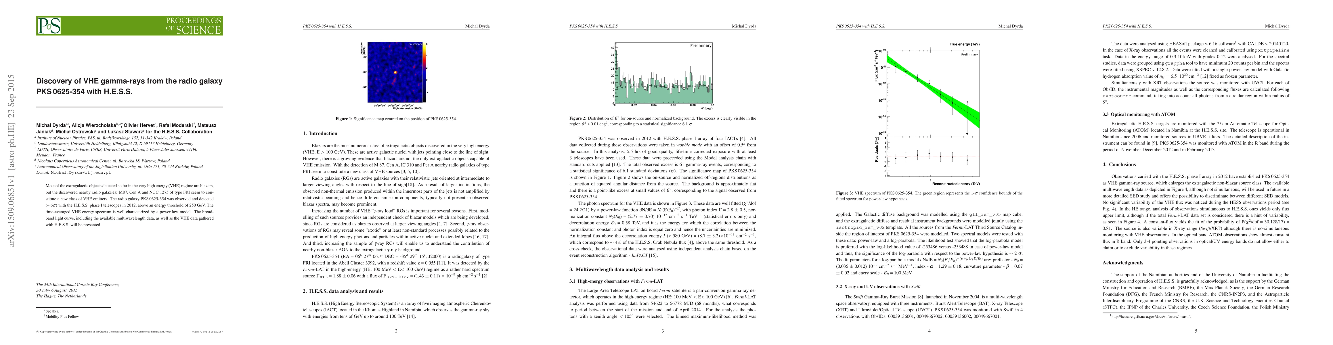 The H.E.S.S. observatory detected very high energy (VHE) gamma-rays from the radio galaxy PKS 0625-354, expanding the known class of VHE emitters beyond blazars. The VHE spectrum follows a power law model, and the findings are supported by a broad-band light curve incorporating multiwavelength data.