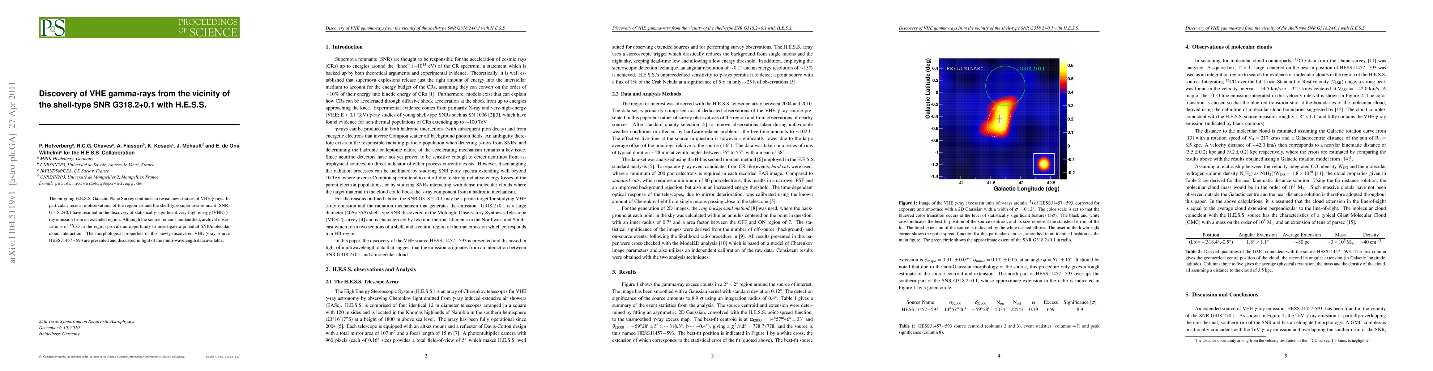 The H.E.S.S. survey discovered significant VHE gamma-ray emission from an extended region around the shell-type SNR G318.2+0.1, identified as HESSJ1457-593, suggesting a possible interaction between the SNR and nearby molecular clouds. The study discusses the morphological properties of this new source in relation to available multi-wavelength data.