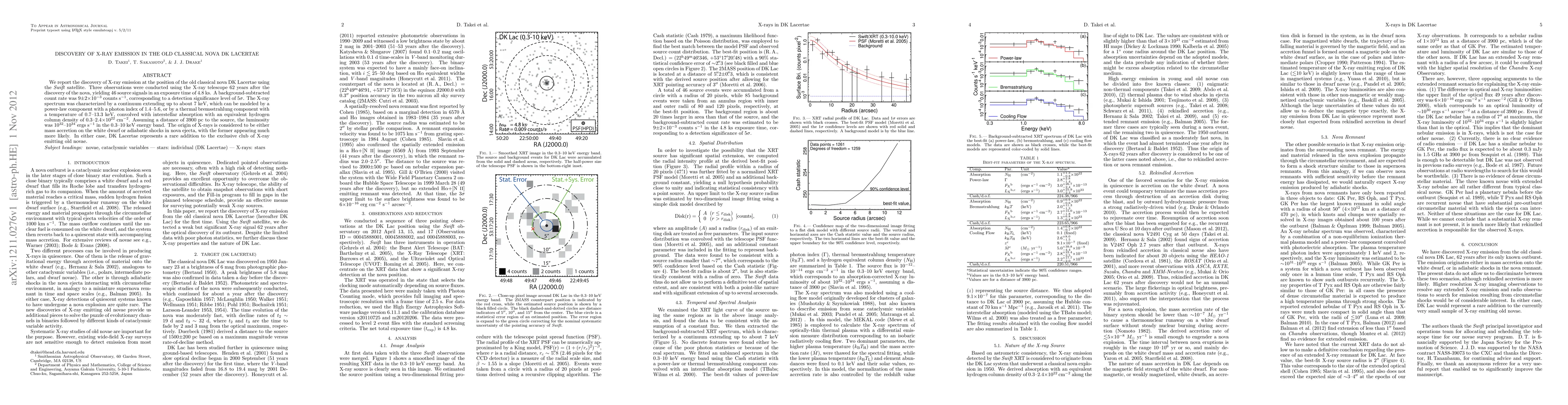 We report the discovery of X-ray emission at the position of the old classical nova DK Lacertae using the Swift satellite. Three observations were conducted using the X-ray telescope 62 years after the discovery of the nova, yielding 46 source signals in an exposure time of 4.8 ks. A background-subtracted count rate was 9+/-2x10^{-3} counts s^{-1}, corresponding to a detection significance level of 5-sigma. The X-ray spectrum was characterized by a continuum extending up to about 7 keV, which can be modeled by a power-law component with a photon index of 1.4--5.6, or by a thermal bremsstrahlung component with a temperature of 0.7--13.3 keV, convolved with interstellar absorption with an equivalent hydrogen column density of 0.3--2.4x10^{22} cm^{-2}. Assuming a distance of 3900 pc to the source, the luminosity was 10^{32}--10^{34} ergs s^{-1} in the 0.3--10 keV energy band. The origin of X-rays is considered to be either mass accretion on the white dwarf or adiabatic shocks in nova ejecta, with the former appearing much more likely. In either case, DK Lacertae represents a rare addition to the exclusive club of X-ray emitting old novae.