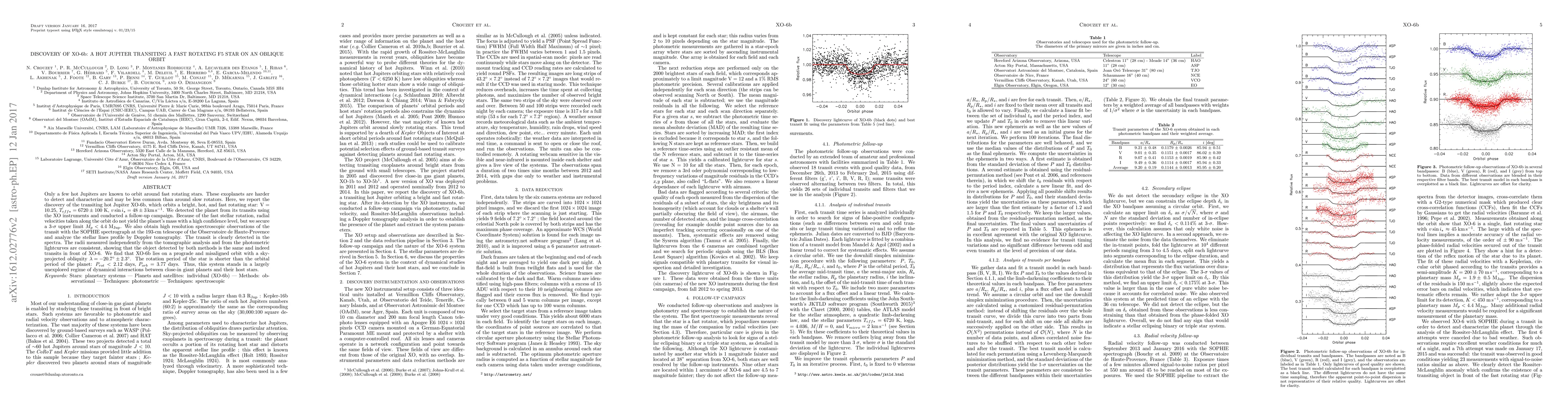 The discovery of XO-6b, a transiting hot Jupiter orbiting a fast rotating F5 star, reveals a rare system with a misaligned orbit and provides insights into the dynamics of close-in giant planets around rapidly rotating stars. The planet's mass is constrained with a 3-sigma upper limit, and its transit is confirmed through both photometric and spectroscopic observations.