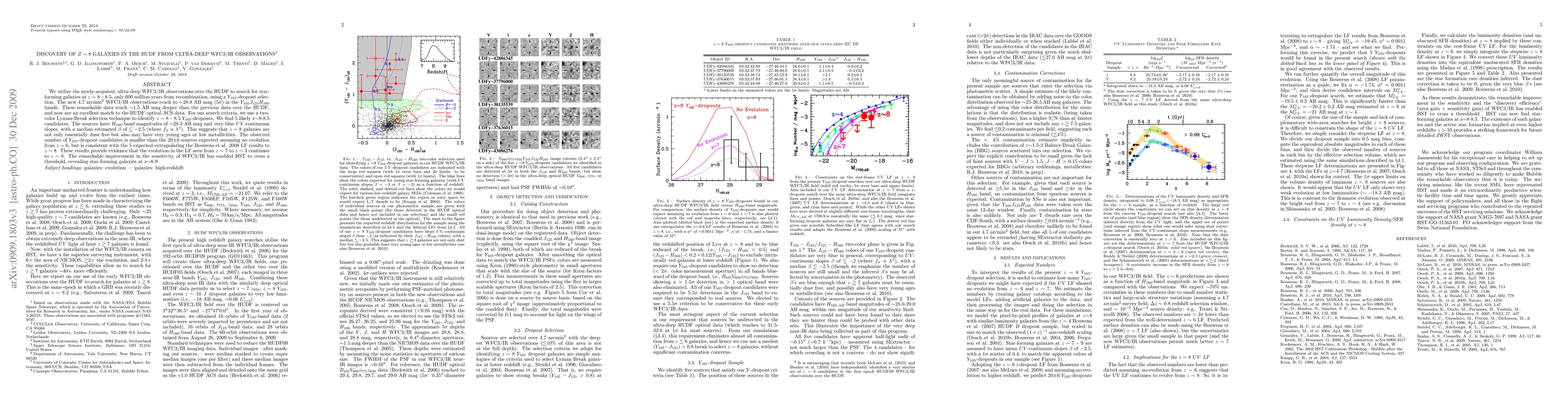 This study uses ultra-deep WFC3/IR observations of the HUDF to identify star-forming galaxies at z~8-8.5, finding 5 likely candidates with very blue UV-continuum slopes, suggesting they are dust-free and possibly young or low in metallicity. The improved sensitivity reveals evidence of continued evolution in the galaxy luminosity function from z~7 to z~8.