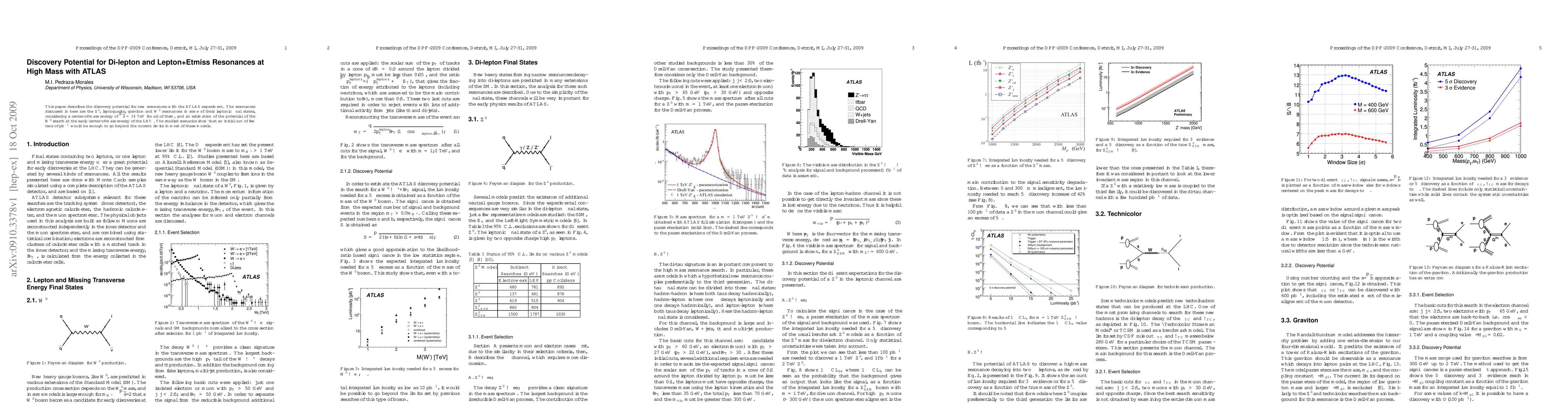 This paper evaluates the ATLAS experiment's potential to discover new resonances, including Z', leptoquarks, graviton, and W', at a center-of-mass energy of 14 TeV. Initial data runs of tens of inverse picobarns could exceed current limits in most models.