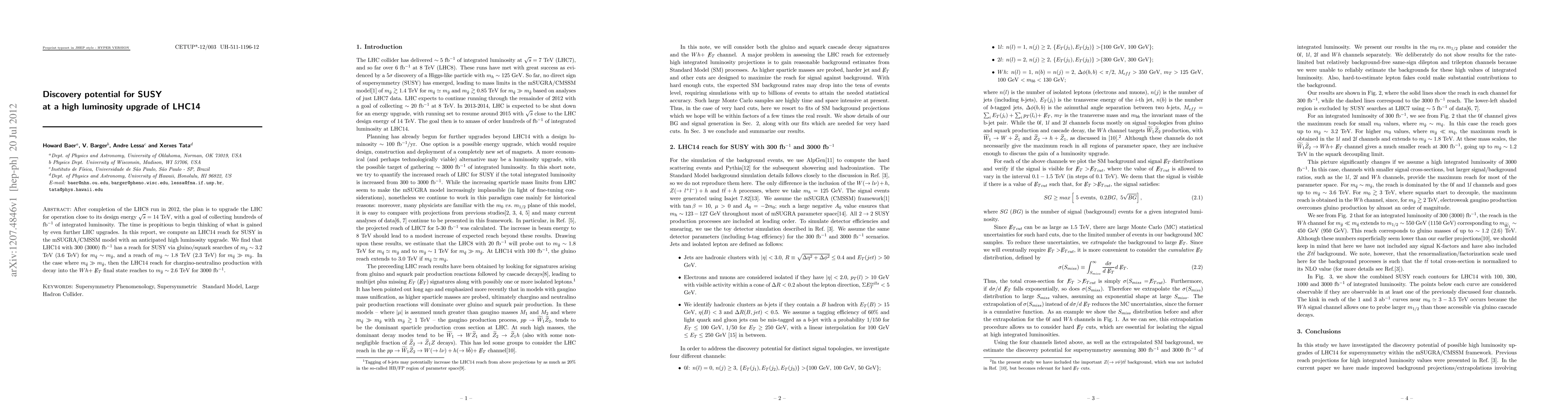After completion of the LHC8 run in 2012, the plan is to upgrade the LHC for operation close to its design energy sqrt{s}=14 TeV, with a goal of collecting hundreds of fb^{-1} of integrated luminosity. The time is propitious to begin thinking of what is gained by even further LHC upgrades. In this report, we compute an LHC14 reach for SUSY in the mSUGRA/CMSSM model with an anticipated high luminosity upgrade. We find that LHC14 with 300 (3000) fb^{-1} has a reach for SUSY via gluino/squark searches of m(gluino)\sim3.2 TeV (3.6 TeV) for m(squark)\sim m)gluino), and a reach of m(gluino)\sim1.8 TeV (2.3 TeV) for m(squark)>> m(gluino). In the case where m(squark)>> m(gluino), then the LHC14 reach for chargino-neutralino production with decay into the Wh+MET final state reaches to m(gluino)\sim2.6 TeV for 3000 fb^{-1}.