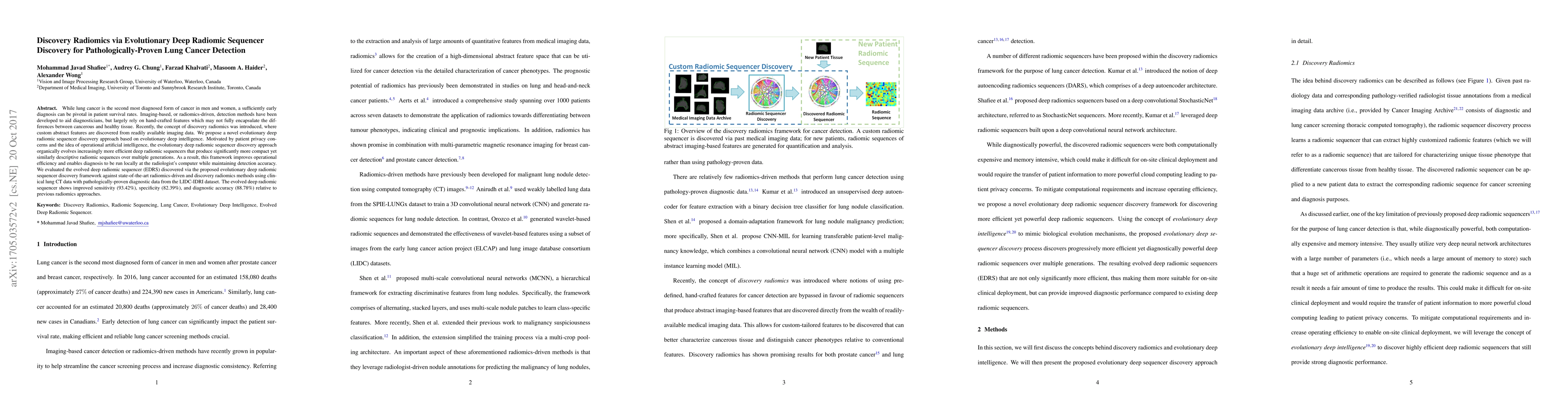 This paper introduces an evolutionary deep radiomic sequencer discovery approach to enhance the detection of pathologically-proven lung cancer using CT imaging. The proposed method evolves deep radiomic sequencers to generate more efficient, compact, and accurate radiomic sequences, improving operational efficiency and enabling local diagnosis while maintaining high diagnostic accuracy.