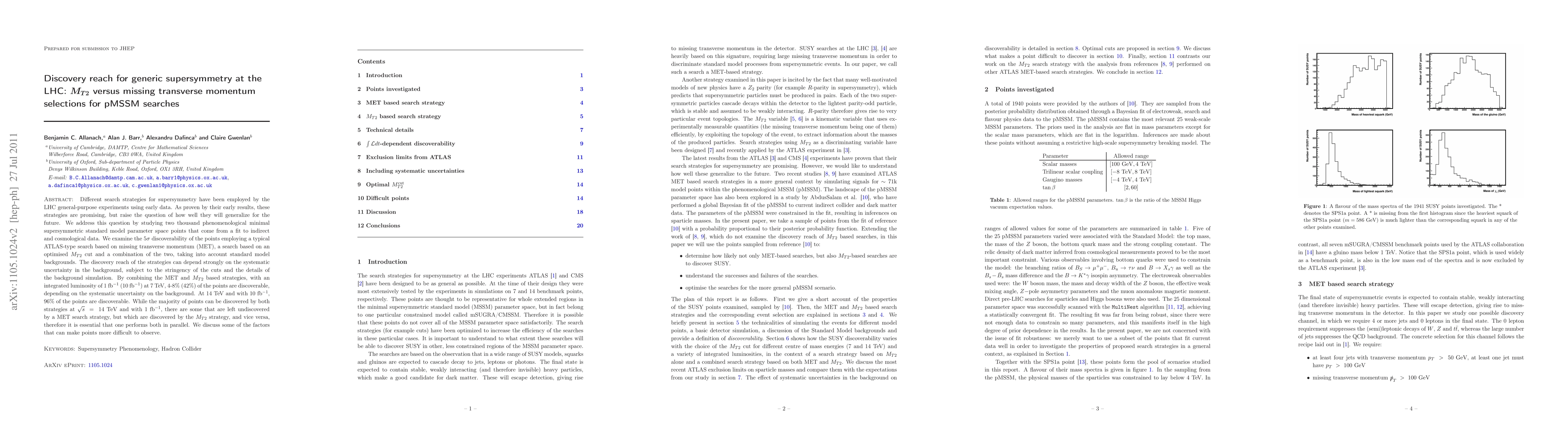 Different search strategies for supersymmetry have been employed by the LHC general-purpose experiments using early data. As proven by their early results, these strategies are promising, but raise the question of how well they will generalize for the future. We address this question by studying two thousand phenomenological minimal supersymmetric standard model parameter space points that come from a fit to indirect and cosmological data. We examine the 5 sigma discoverability of the points employing a typical ATLAS-type search based on missing transverse momentum (MET), a search based on an optimised MT2 cut and a combination of the two, taking into account standard model backgrounds. The discovery reach of the strategies can depend strongly on the systematic uncertainty in the background, subject to the stringency of the cuts and the details of the background simulation. By combining the MET and MT2 based strategies, with an integrated luminosity of 1 fb^-1 (10 fb^-1) at 7 TeV, 4-8% (42%) of the points are discoverable, depending on the systematic uncertainty on the background. At 14 TeV and with 10 fb^-1, 96% of the points are discoverable. While the majority of points can be discovered by both strategies at sqrt{s} = 14 TeV and with 1 fb^-1, there are some that are left undiscovered by a MET search strategy, but which are discovered by the MT2 strategy, and vice versa, therefore it is essential that one performs both in parallel. We discuss some of the factors that can make points more difficult to observe.