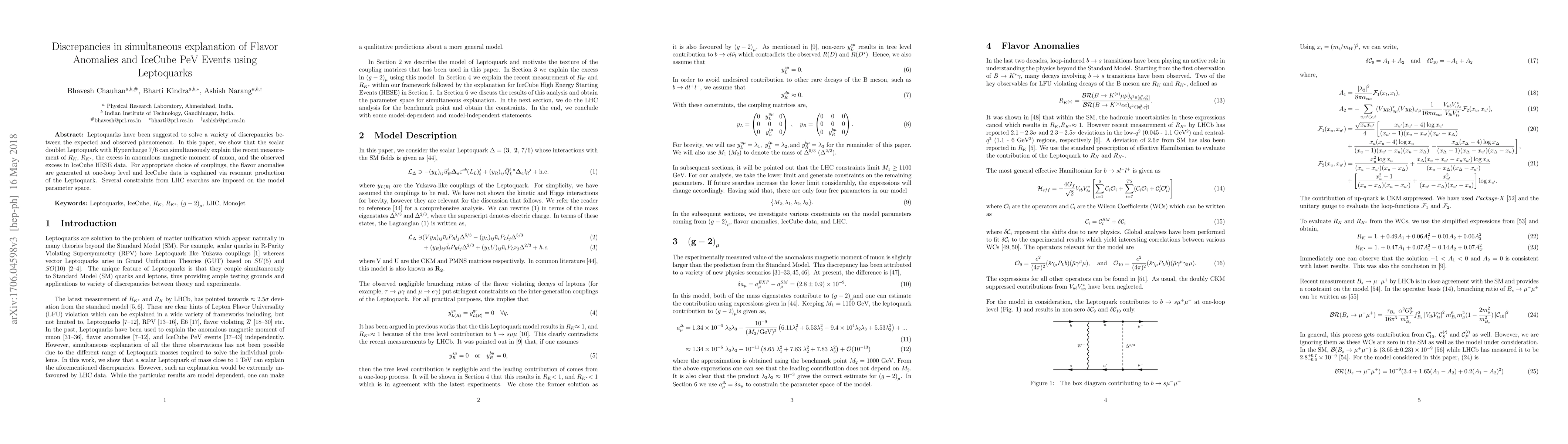 This paper explores how a scalar doublet Leptoquark with Hypercharge 7/6 can simultaneously address flavor anomalies and explain the IceCube PeV neutrino events. It demonstrates that appropriate coupling choices generate the necessary flavor anomalies at the one-loop level and account for the IceCube data through resonant Leptoquark production, while also considering constraints from LHC searches.