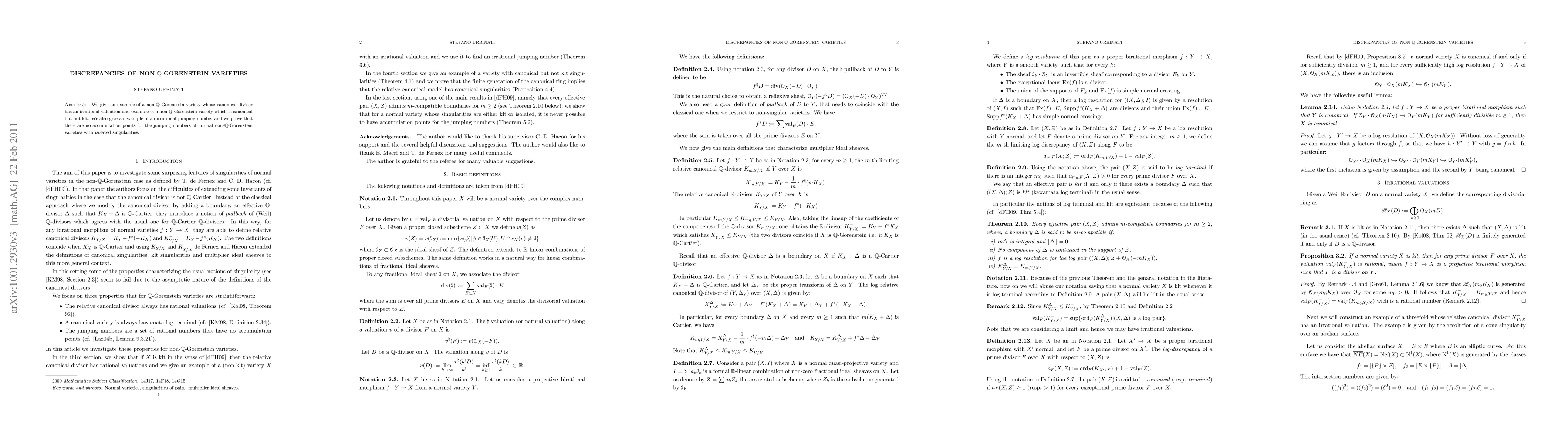 This paper presents examples of non-$\Q$-Gorenstein varieties that are canonical but not klt, featuring a canonical divisor with an irrational valuation. It also demonstrates an irrational jumping number and proves the absence of accumulation points for the jumping numbers in such varieties.
