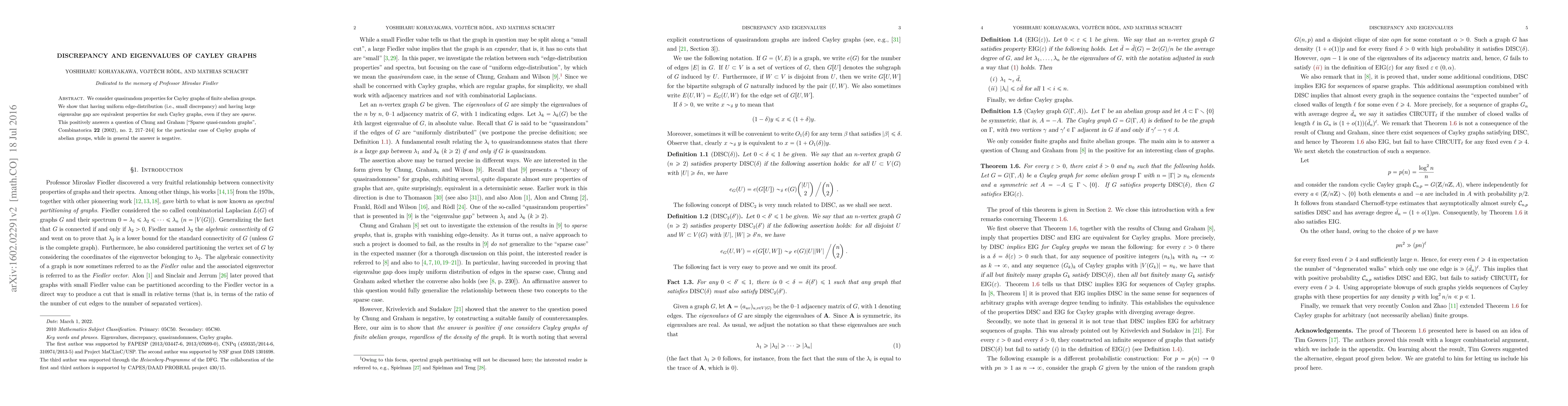 Cayley graphs of finite abelian groups have equivalent properties of uniform edge-distribution and large eigenvalue gap, addressing a question posed in a previous paper for this specific case.