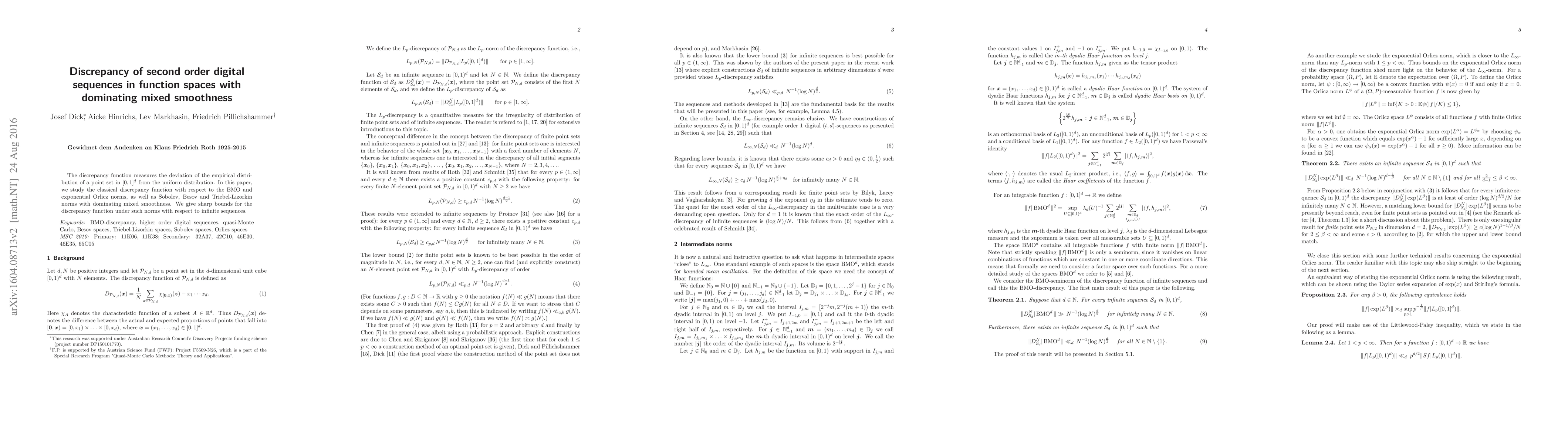 Researchers studied discrepancy functions for digital sequences in function spaces with dominating mixed smoothness, finding sharp bounds for such norms as BMO, exponential Orlicz, Sobolev, Besov, and Triebel-Lizorkin norms.