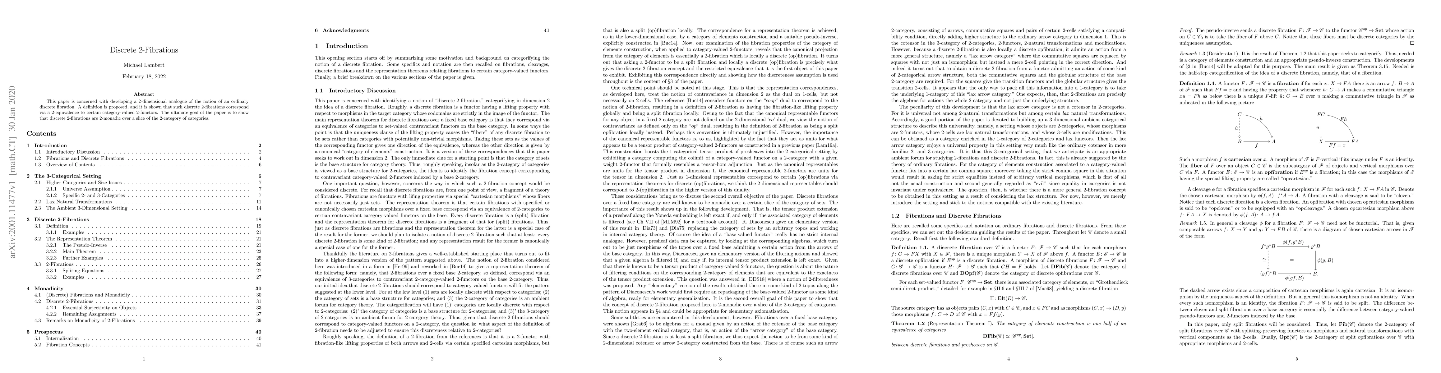 This paper defines a 2-dimensional analogue of discrete fibrations, demonstrating that these discrete 2-fibrations correspond to specific category-valued 2-functors and ultimately prove they are 2-monadic over a slice of the 2-category of categories.