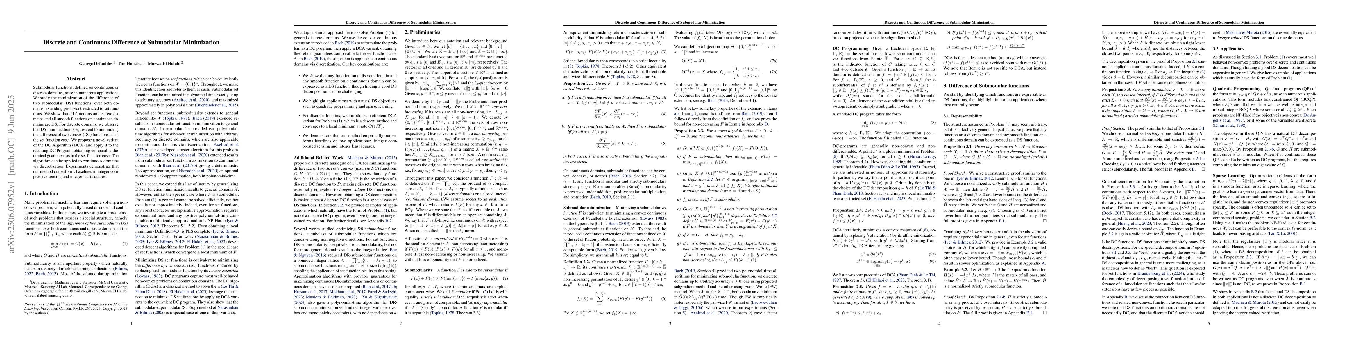 Submodular functions, defined on continuous or discrete domains, arise in numerous applications. We study the minimization of the difference of two submodular (DS) functions, over both domains, extending prior work restricted to set functions. We show that all functions on discrete domains and all smooth functions on continuous domains are DS. For discrete domains, we observe that DS minimization is equivalent to minimizing the difference of two convex (DC) functions, as in the set function case. We propose a novel variant of the DC Algorithm (DCA) and apply it to the resulting DC Program, obtaining comparable theoretical guarantees as in the set function case. The algorithm can be applied to continuous domains via discretization. Experiments demonstrate that our method outperforms baselines in integer compressive sensing and integer least squares.