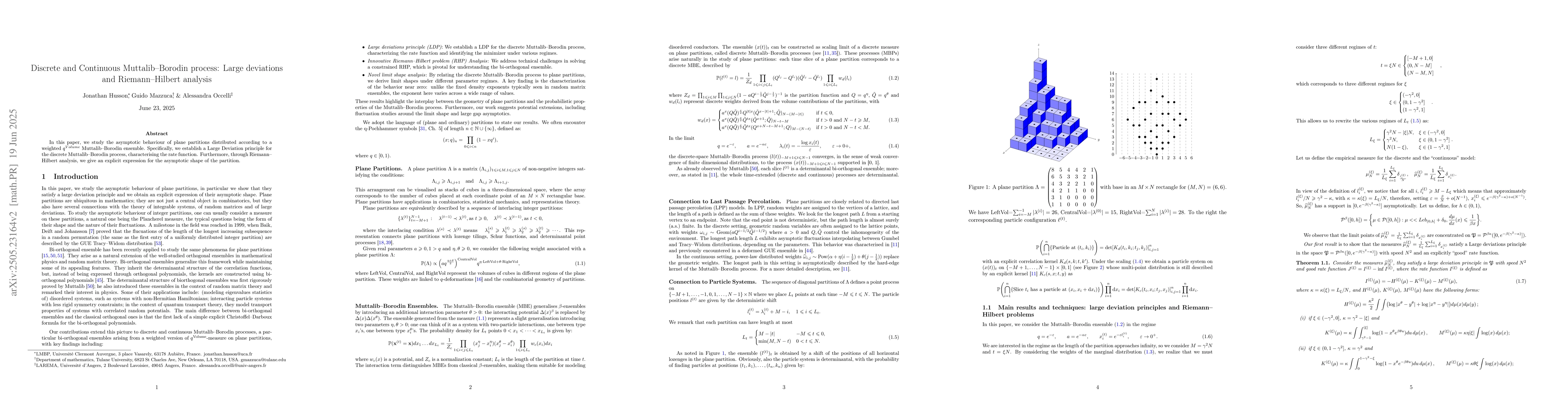 The explicit expression for the asymptotic shape of the partition and the detailed characterization of the rate function for the discrete Muttalib--Borodin process represent a novel contribution to the field, bridging combinatorial structures with analytical techniques.