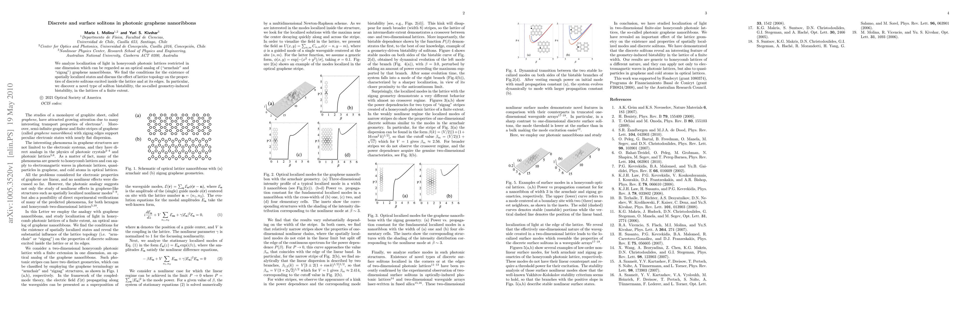 This paper investigates the localization of light in photonic graphene nanoribbons, revealing conditions for discrete solitons and exploring the impact of lattice topology on soliton properties, including a novel geometry-induced bistability in finite-extent lattices.