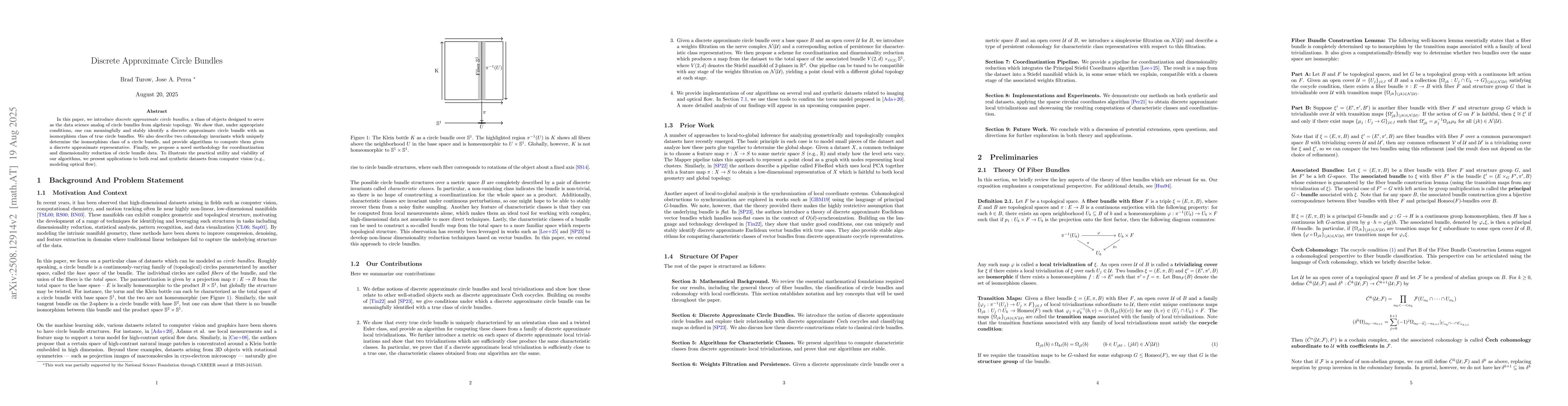 In this paper, we introduce discrete approximate circle bundles, a class of objects designed to serve as the data science analog of circle bundles from algebraic topology. We show that, under appropriate conditions, one can meaningfully and stably identify a discrete approximate circle bundle with an isomorphism class of true circle bundles. We also describe two cohomology invariants which uniquely determine the isomorphism class of a circle bundle, and provide algorithms to compute them given a discrete approximate representative. Finally, we propose a novel methodology for coordinatization and dimensionality reduction of circle bundle data. To illustrate the practical utility and viability of our algorithms, we present applications to both real and synthetic datasets from computer vision (e.g., modeling optical flow).