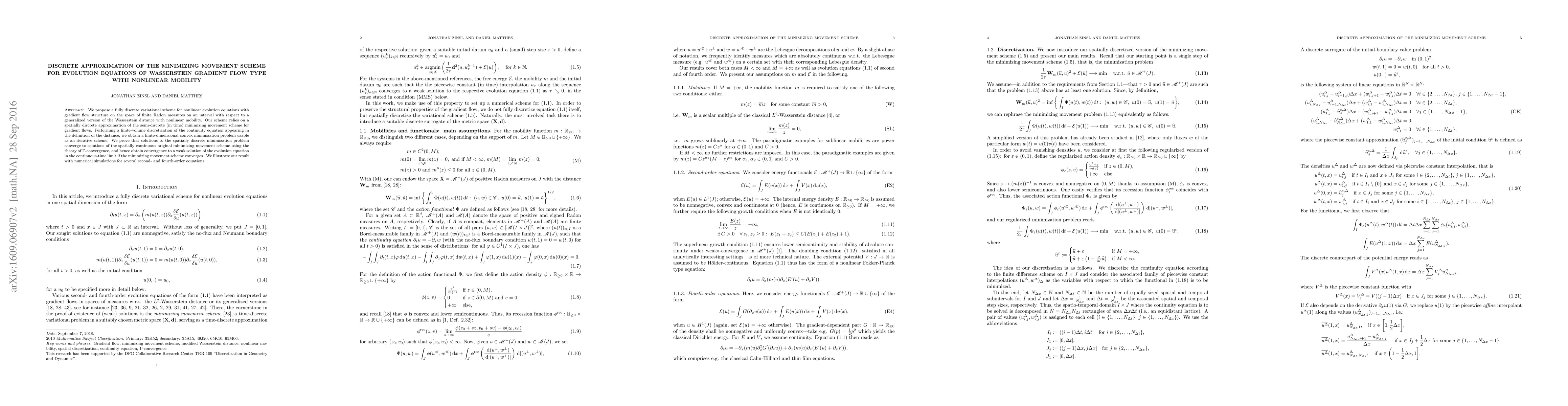 This paper proposes a fully discrete variational scheme for nonlinear evolution equations with gradient flow structure, utilizing a finite-volume discretization method. It demonstrates convergence to weak solutions of the original continuous equations via $\Gamma$-convergence theory and supports the findings with numerical simulations.