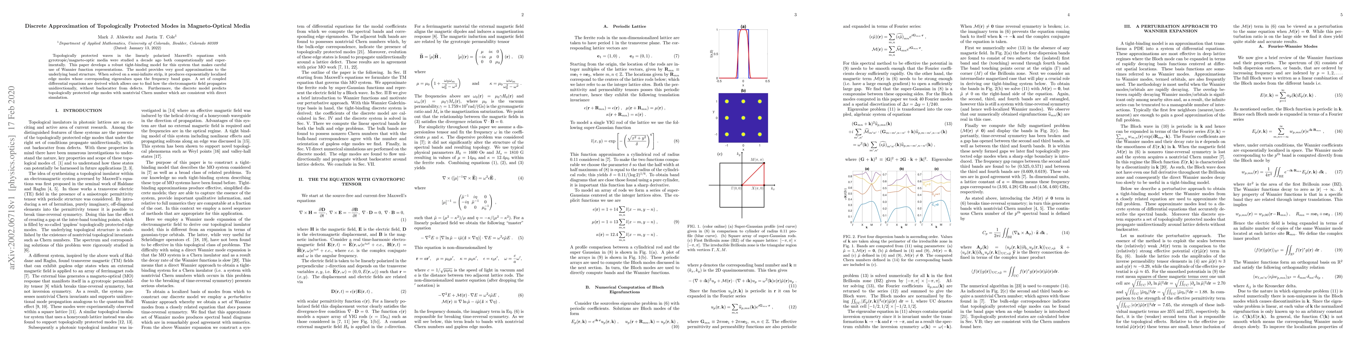 This paper develops a tight-binding model to study topologically protected modes in magneto-optical media, revealing exponentially localized edge modes with nontrivial Chern number.