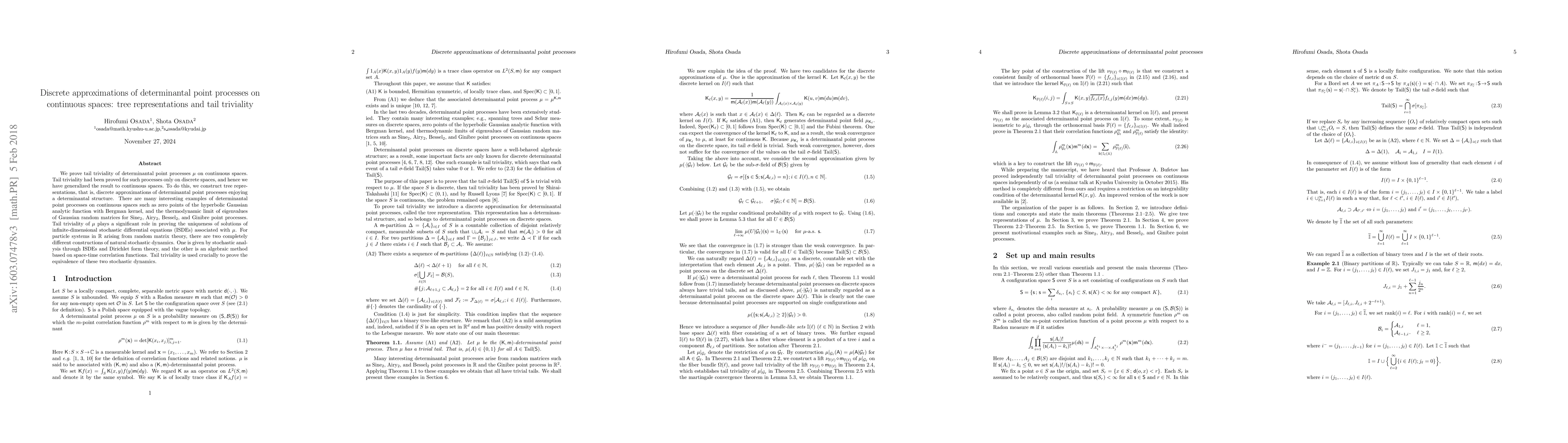 This paper generalizes the concept of tail triviality for determinantal point processes from discrete to continuous spaces by constructing tree representations. The result is significant for proving the uniqueness of solutions to infinite-dimensional stochastic differential equations and for establishing equivalence between different stochastic dynamics in random matrix theory.