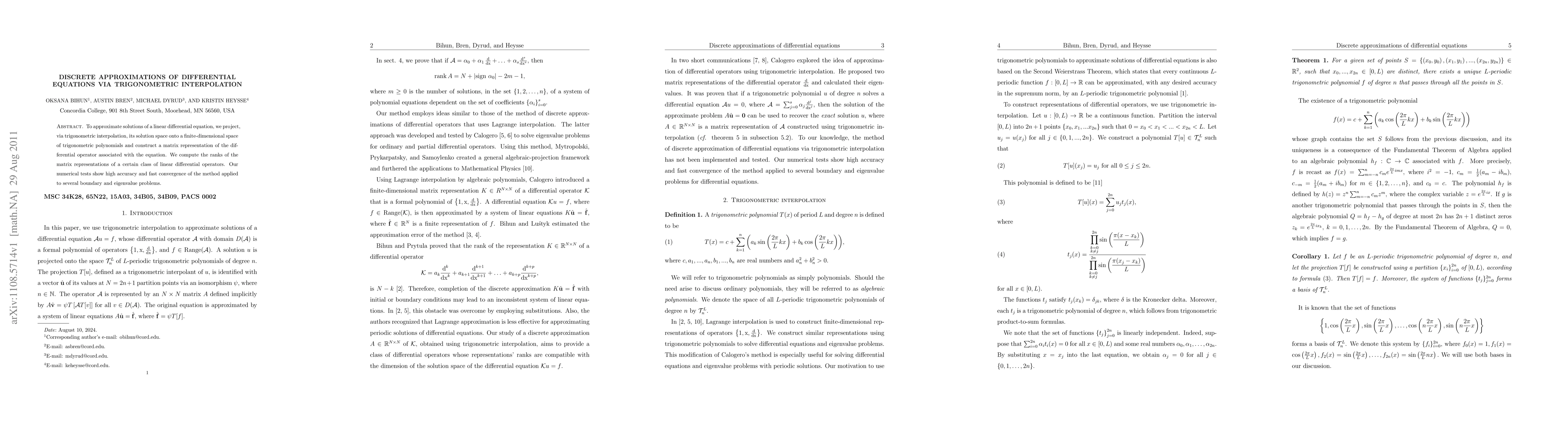 To approximate solutions of a linear differential equation, we project, via trigonometric interpolation, its solution space onto a finite-dimensional space of trigonometric polynomials and construct a matrix representation of the differential operator associated with the equation. We compute the ranks of the matrix representations of a certain class of linear differential operators. Our numerical tests show high accuracy and fast convergence of the method applied to several boundary and eigenvalue problems.