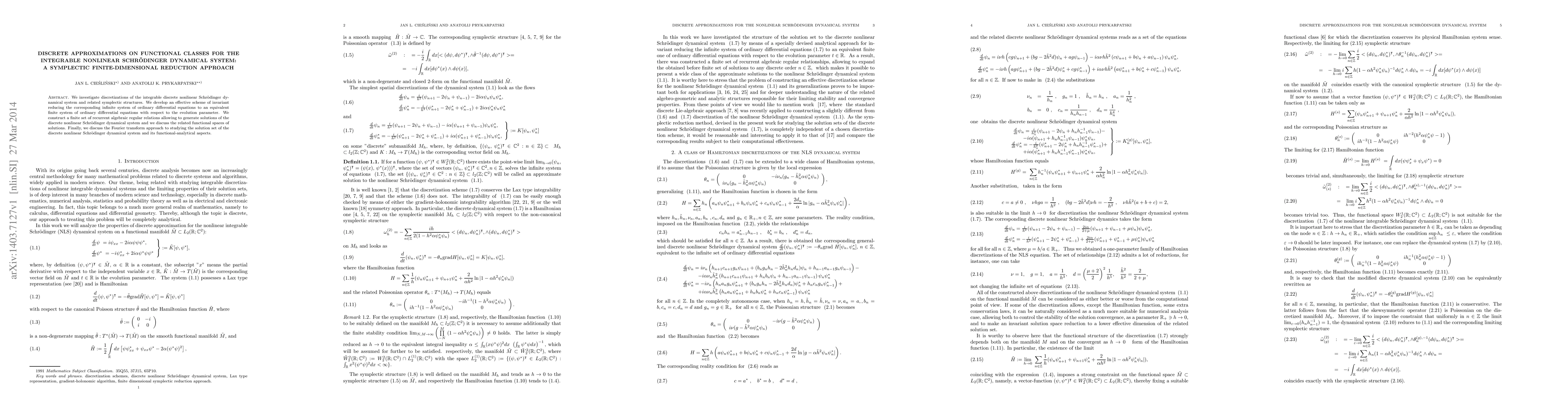 This paper develops a symplectic finite-dimensional reduction approach for discretizing the integrable discrete nonlinear Schrödinger dynamical system, resulting in a finite set of recurrent algebraic relations that generate solutions and explores the functional-analytical aspects using a Fourier transform approach.