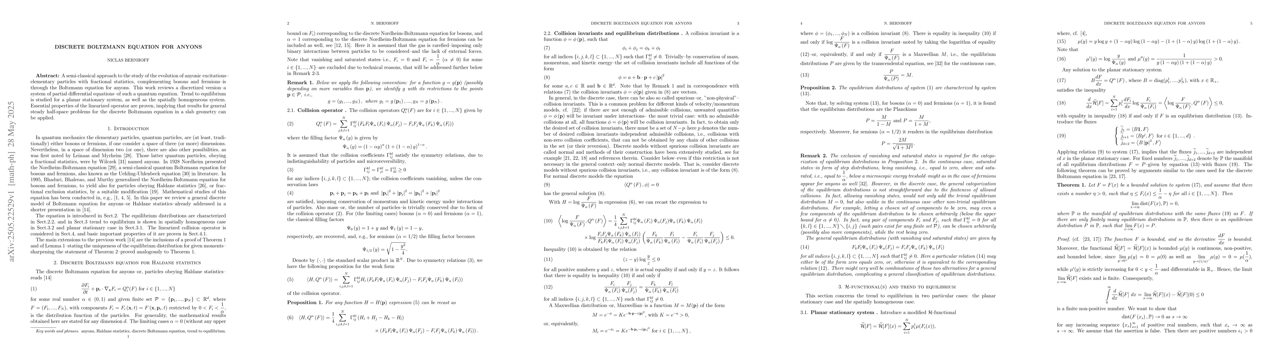 Researchers develop a discrete version of the Boltzmann equation to study anyonic excitations, finding essential properties that can be applied to various steady-state problems in physics.