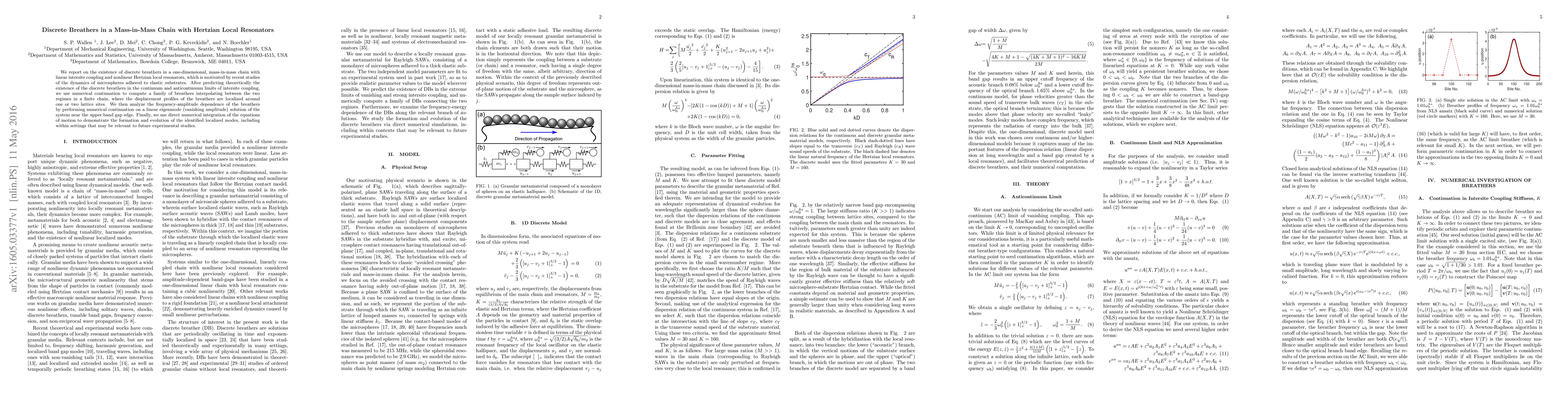 This paper investigates the existence of discrete breathers in a one-dimensional mass-in-mass chain with linear intersite coupling and nonlinear Hertzian local resonators. The study predicts and numerically confirms localized breather modes, analyzing their frequency-amplitude dependence and demonstrating their formation through direct numerical integration.