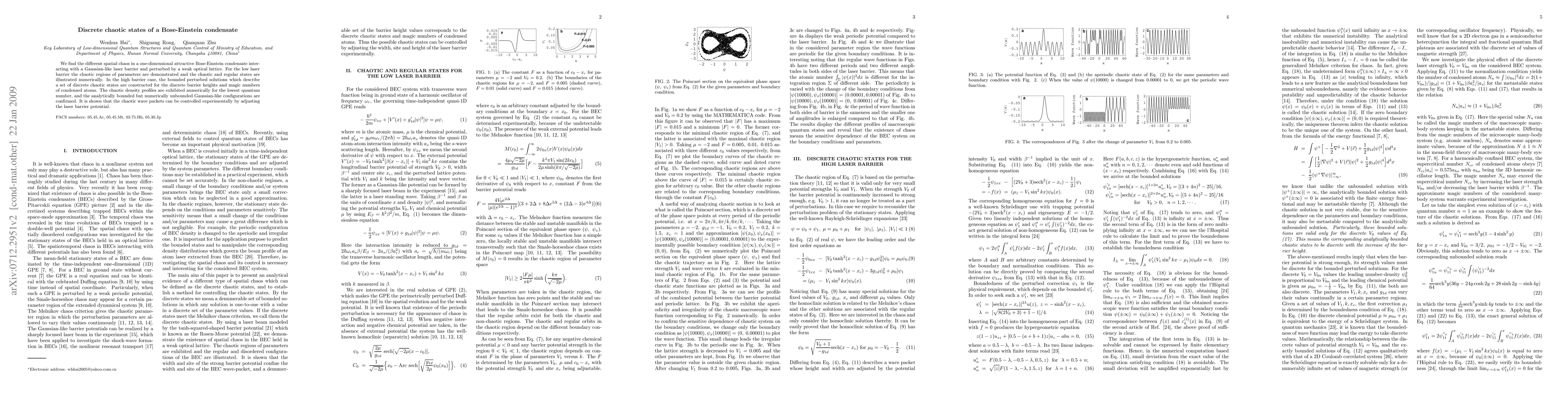 This paper investigates spatial chaos in a one-dimensional attractive Bose-Einstein condensate influenced by a Gaussian-like laser barrier and a weak optical lattice. It demonstrates chaotic and regular states numerically for low barriers and constructs bounded perturbed solutions for high barriers, revealing discrete chaotic states linked to specific barrier heights and quantum numbers.