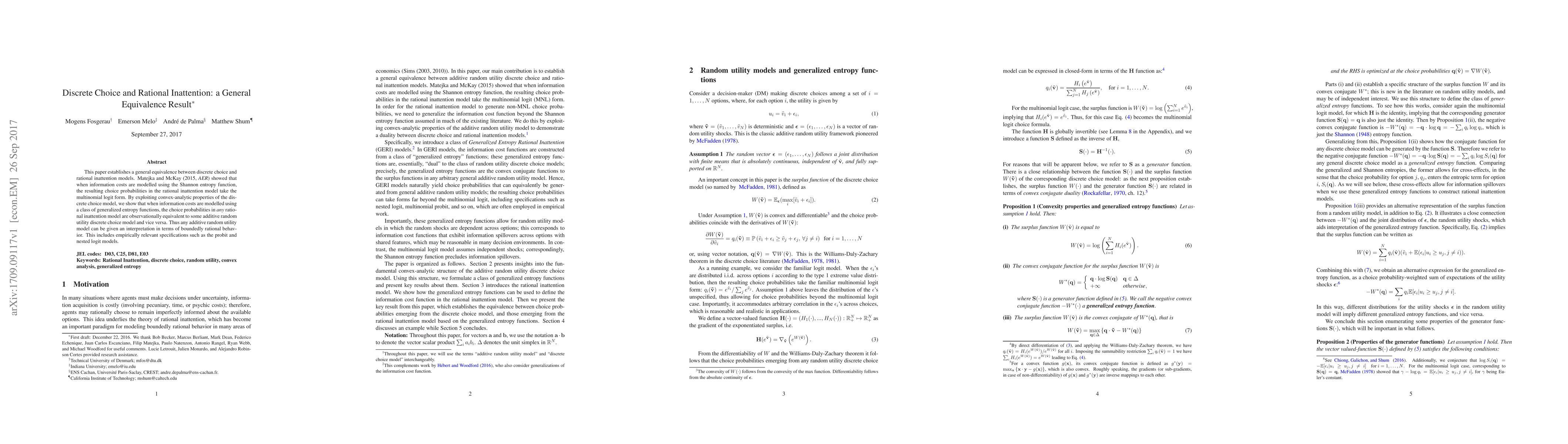 This paper establishes a general equivalence between discrete choice and rational inattention models. Matejka and McKay (2015, AER) showed that when information costs are modelled using the Shannon entropy function, the resulting choice probabilities in the rational inattention model take the multinomial logit form. By exploiting convex-analytic properties of the discrete choice model, we show that when information costs are modelled using a class of generalized entropy functions, the choice probabilities in any rational inattention model are observationally equivalent to some additive random utility discrete choice model and vice versa. Thus any additive random utility model can be given an interpretation in terms of boundedly rational behavior. This includes empirically relevant specifications such as the probit and nested logit models.