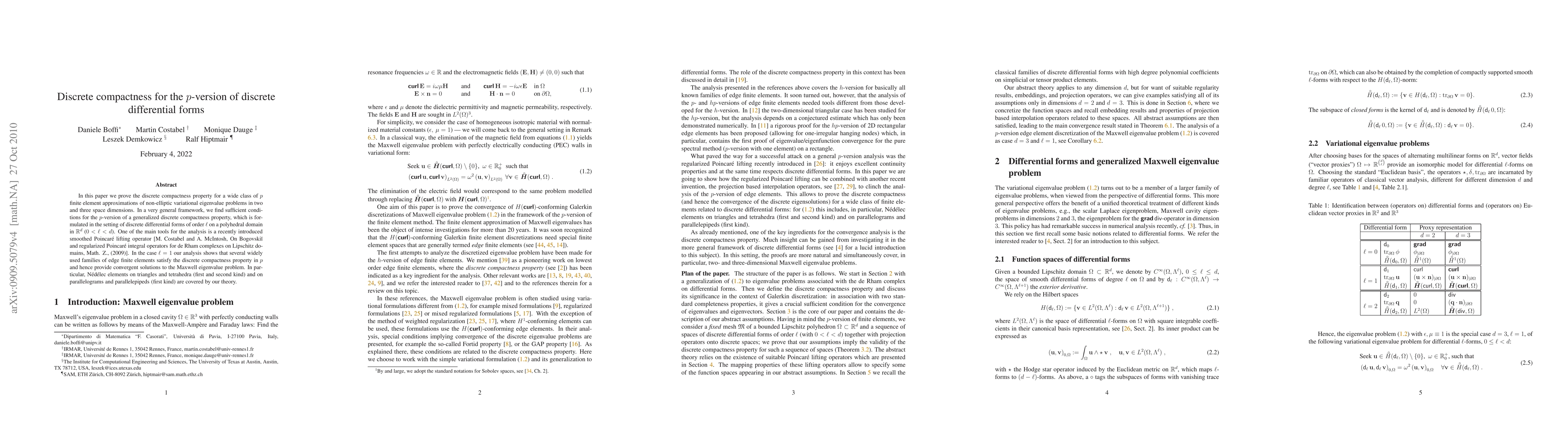 In this paper we prove the discrete compactness property for a wide class of p-version finite element approximations of non-elliptic variational eigenvalue problems in two and three space dimensions. In a very general framework, we find sufficient conditions for the p-version of a generalized discrete compactness property, which is formulated in the setting of discrete differential forms of any order on a d-dimensional polyhedral domain. One of the main tools for the analysis is a recently introduced smoothed Poincar\'e lifting operator [M. Costabel and A. McIntosh, On Bogovskii and regularized Poincar\'e integral operators for de Rham complexes on Lipschitz domains, Math. Z., (2010)]. For forms of order 1 our analysis shows that several widely used families of edge finite elements satisfy the discrete compactness property in p-version and hence provide convergent solutions to the Maxwell eigenvalue problem. In particular, N\'ed\'elec elements on triangles and tetrahedra (first and second kind) and on parallelograms and parallelepipeds (first kind) are covered by our theory.