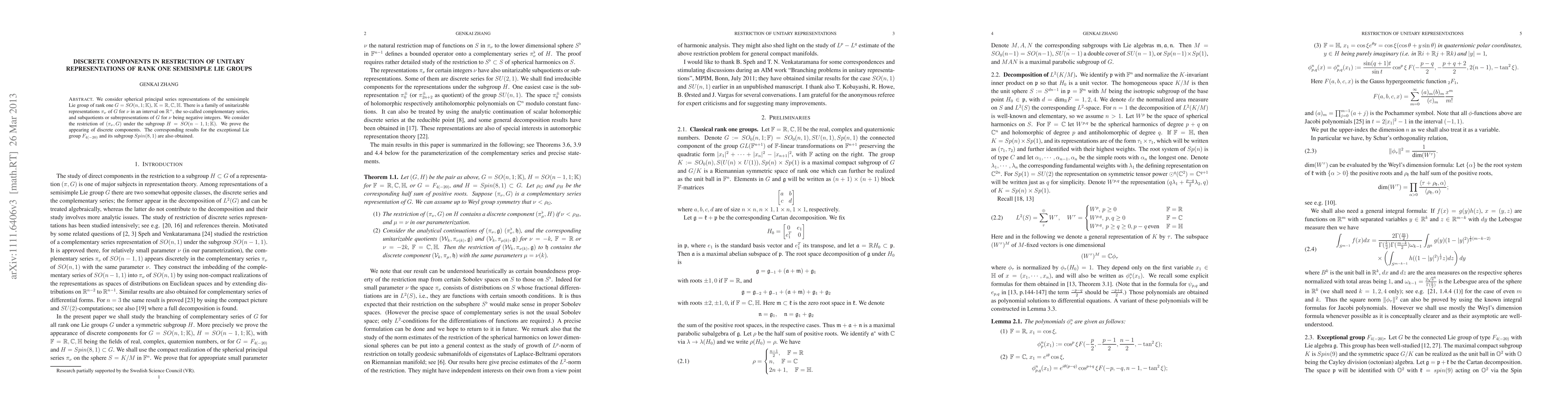 This research paper investigates how certain types of representations of a specific Lie group decompose when restricted to a smaller subgroup, revealing discrete components in the process.