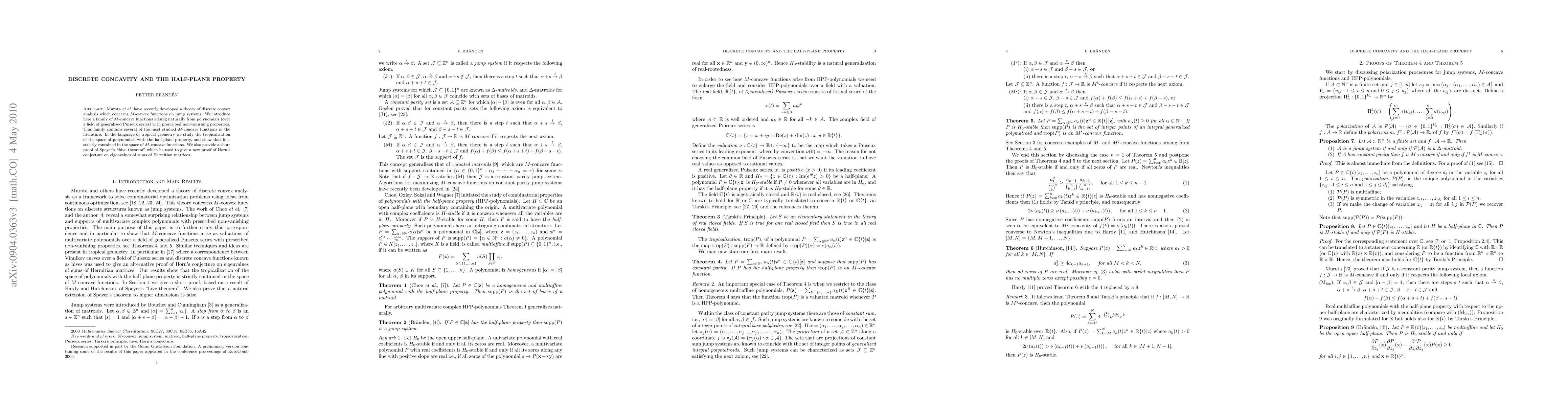 Researchers introduce a family of M-concave functions derived from polynomials with specific properties, showing its connection to tropical geometry and proving Speyer's hive theorem for Horn's conjecture on Hermitian matrices.