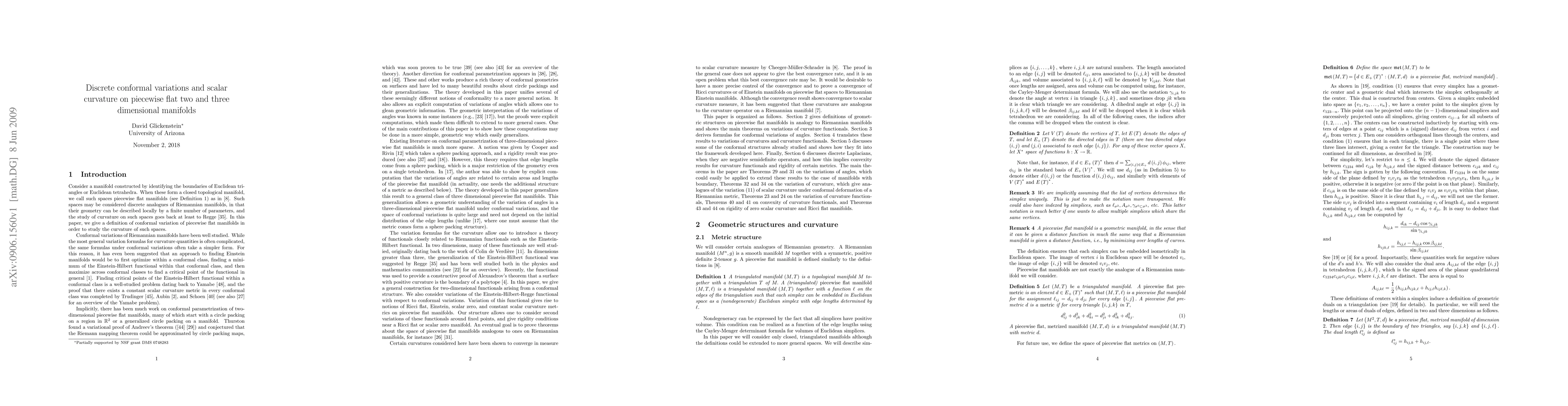 This paper investigates discrete conformal variations in piecewise flat manifolds, deriving angle derivatives that generalize scalar curvature changes. It provides formulas for curvature functionals' variations, proving rigidity theorems for specific constant curvature analogues.